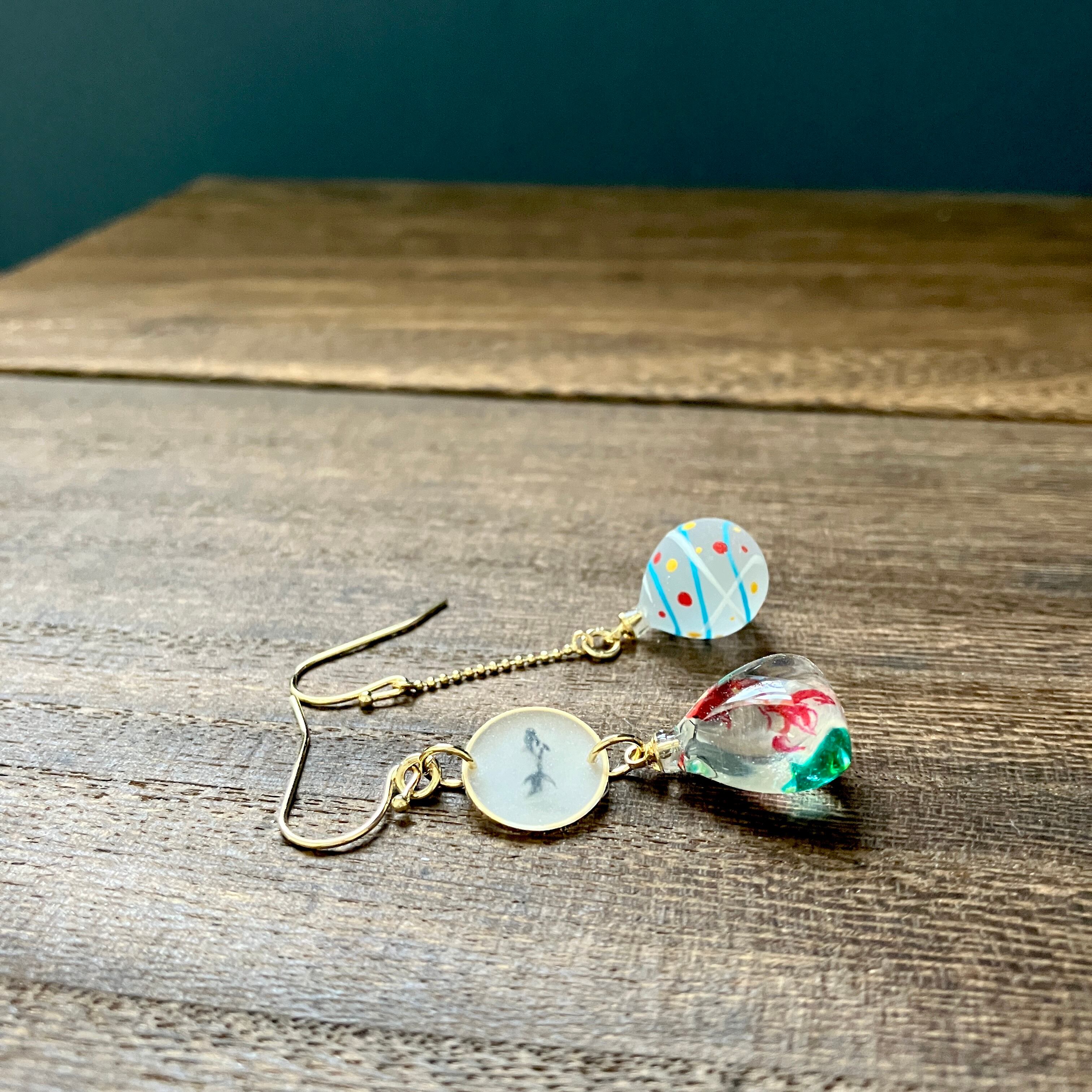 小さな水風船とポイ付きの金魚すくいモチーフに涼しげな世界を閉じ込めました(^^)