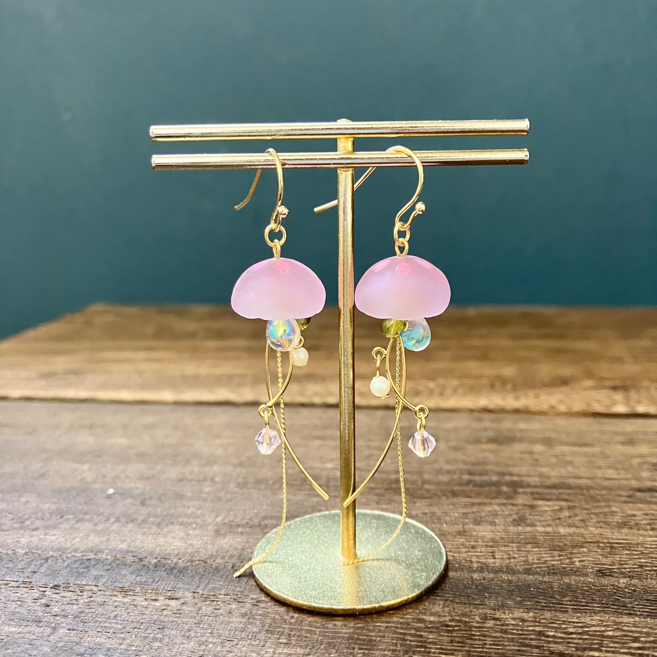 桜と海月をモチーフにしたゆらゆら揺れる耳飾り。