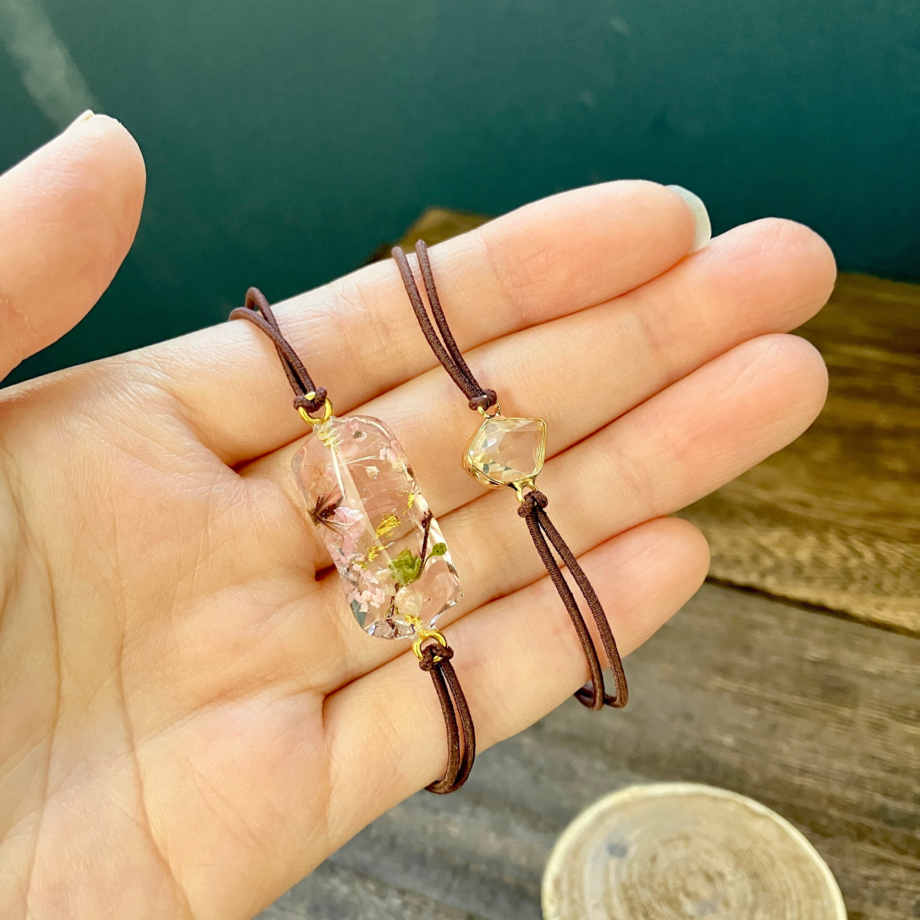 ガラスチャームのシンプルなヘアゴム ブレスと一緒に重ねづけにおすすめな2色セットです^ ^