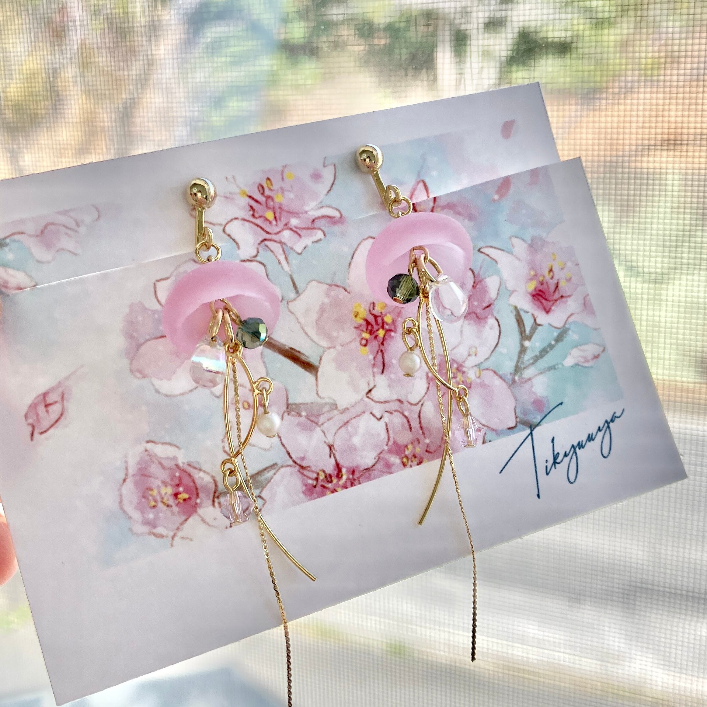 桜と海月をモチーフにしたゆらゆら揺れる耳飾り。