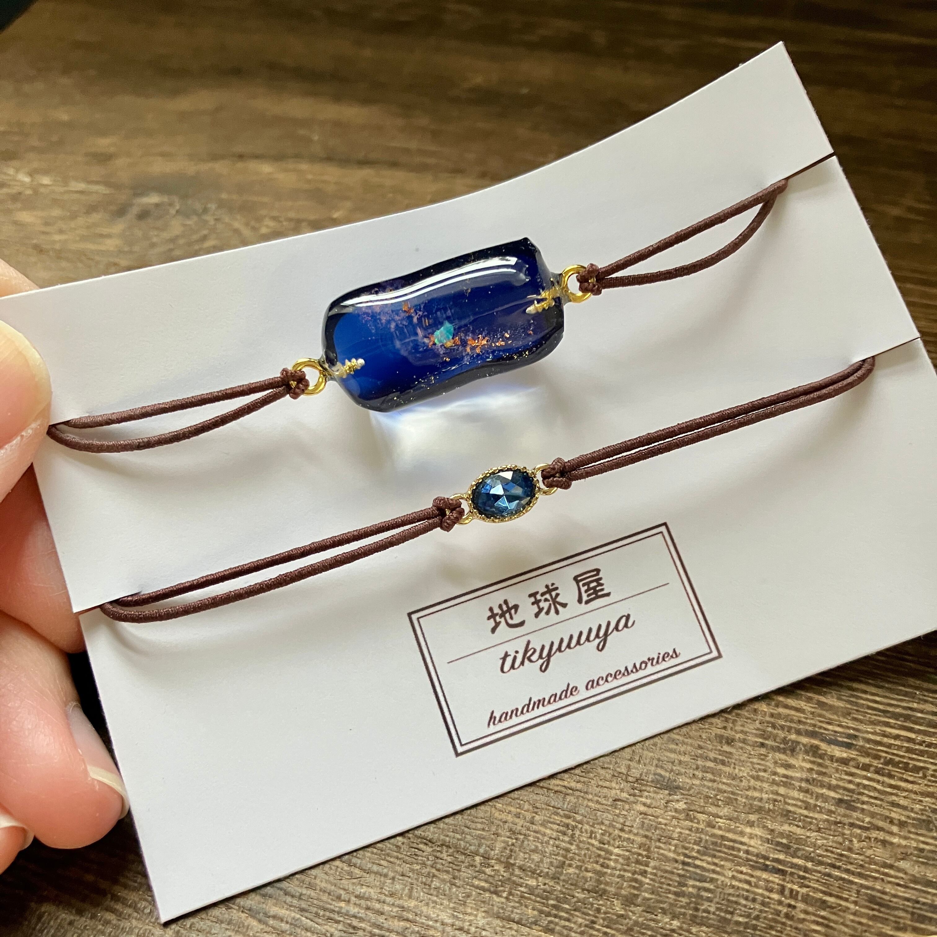 ガラスチャームのシンプルなヘアゴム ブレスと一緒に重ねづけにおすすめな2色セットです^ ^