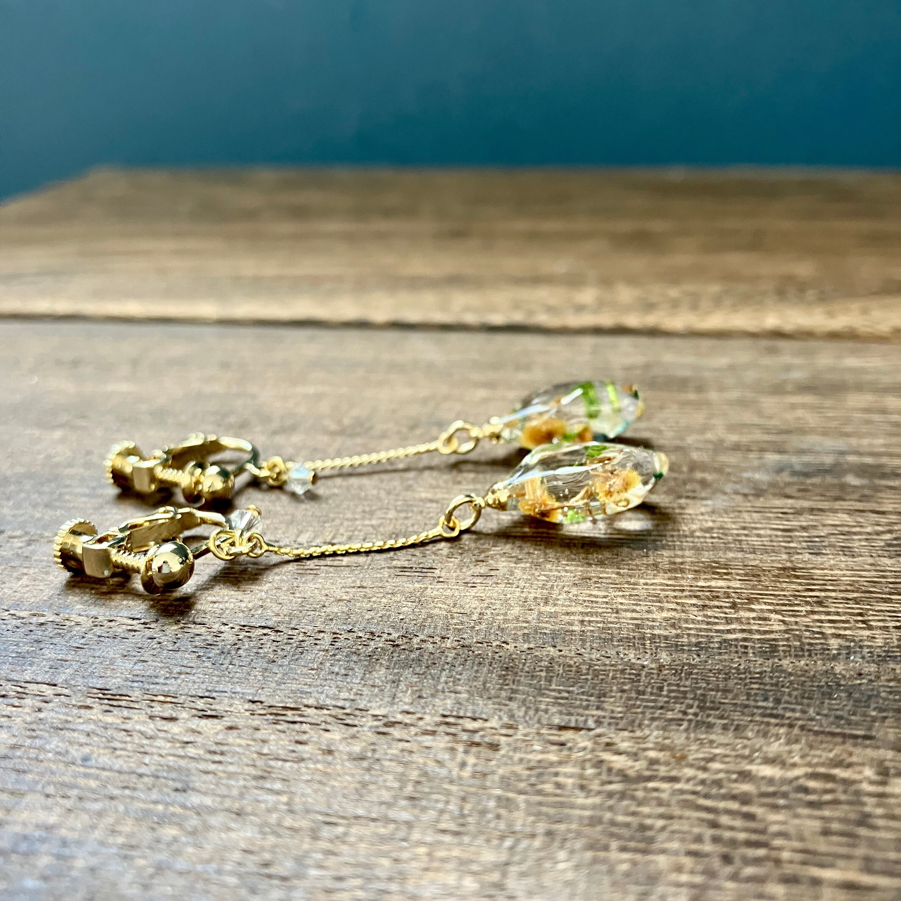 ゆらゆら小さな鉱石イヤリング&ネックレス ミモザの花鉱石