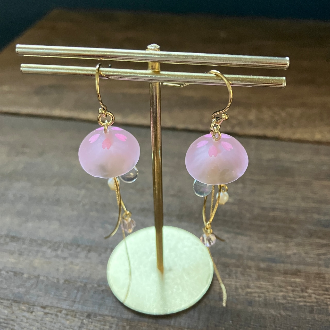 桜と海月をモチーフにしたゆらゆら揺れる耳飾り。