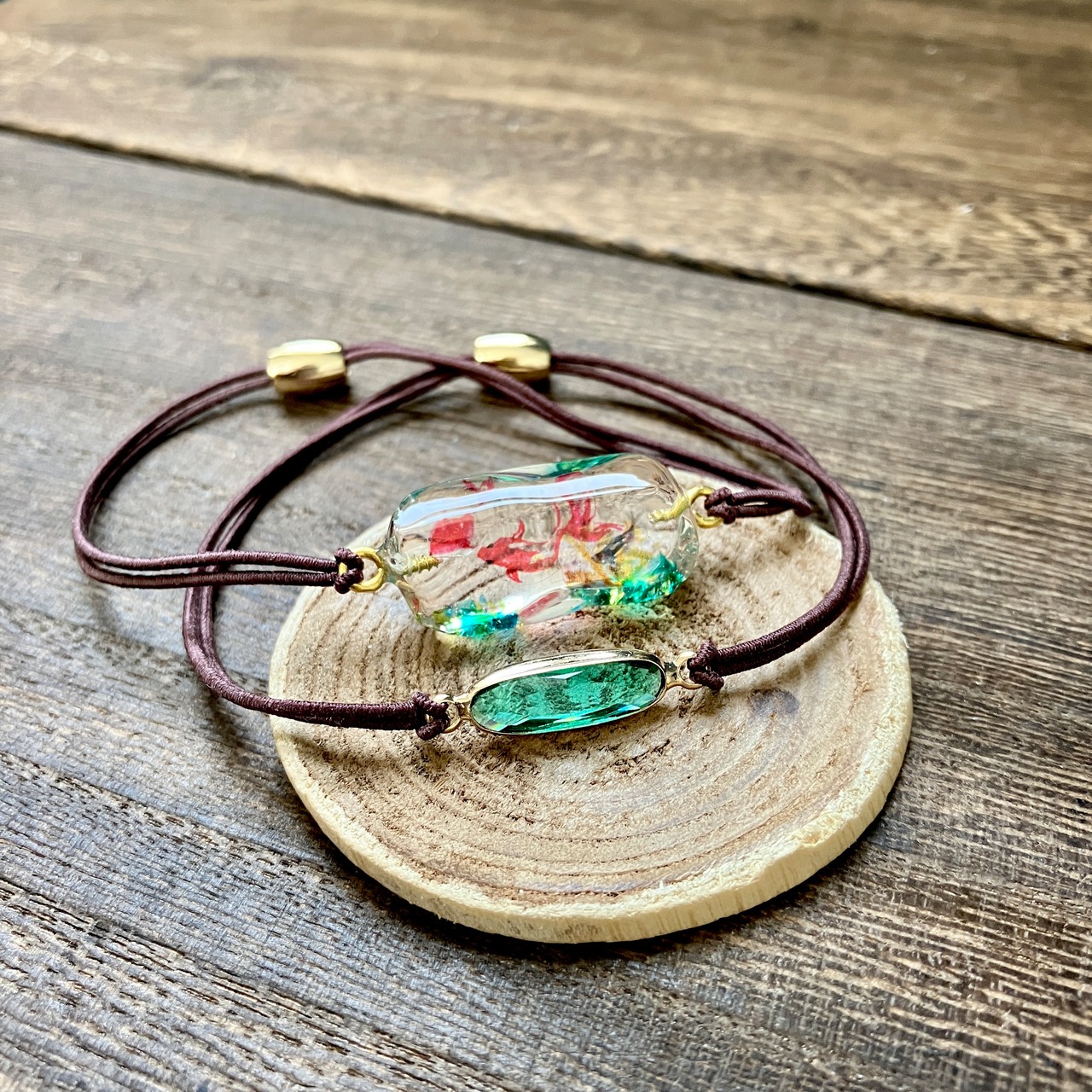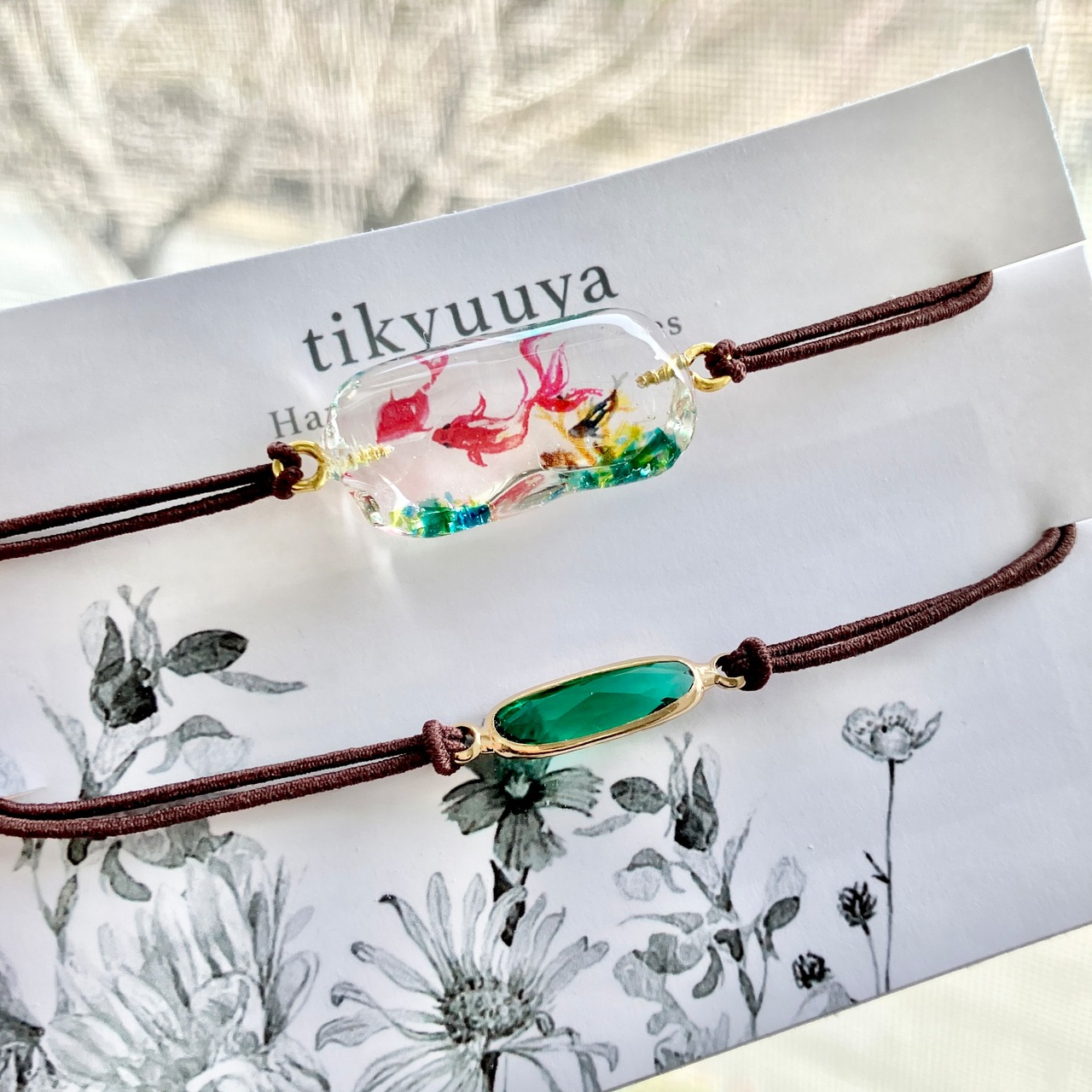 ガラスチャームのシンプルなヘアゴム ブレスと一緒に重ねづけにおすすめな2色セットです^ ^
