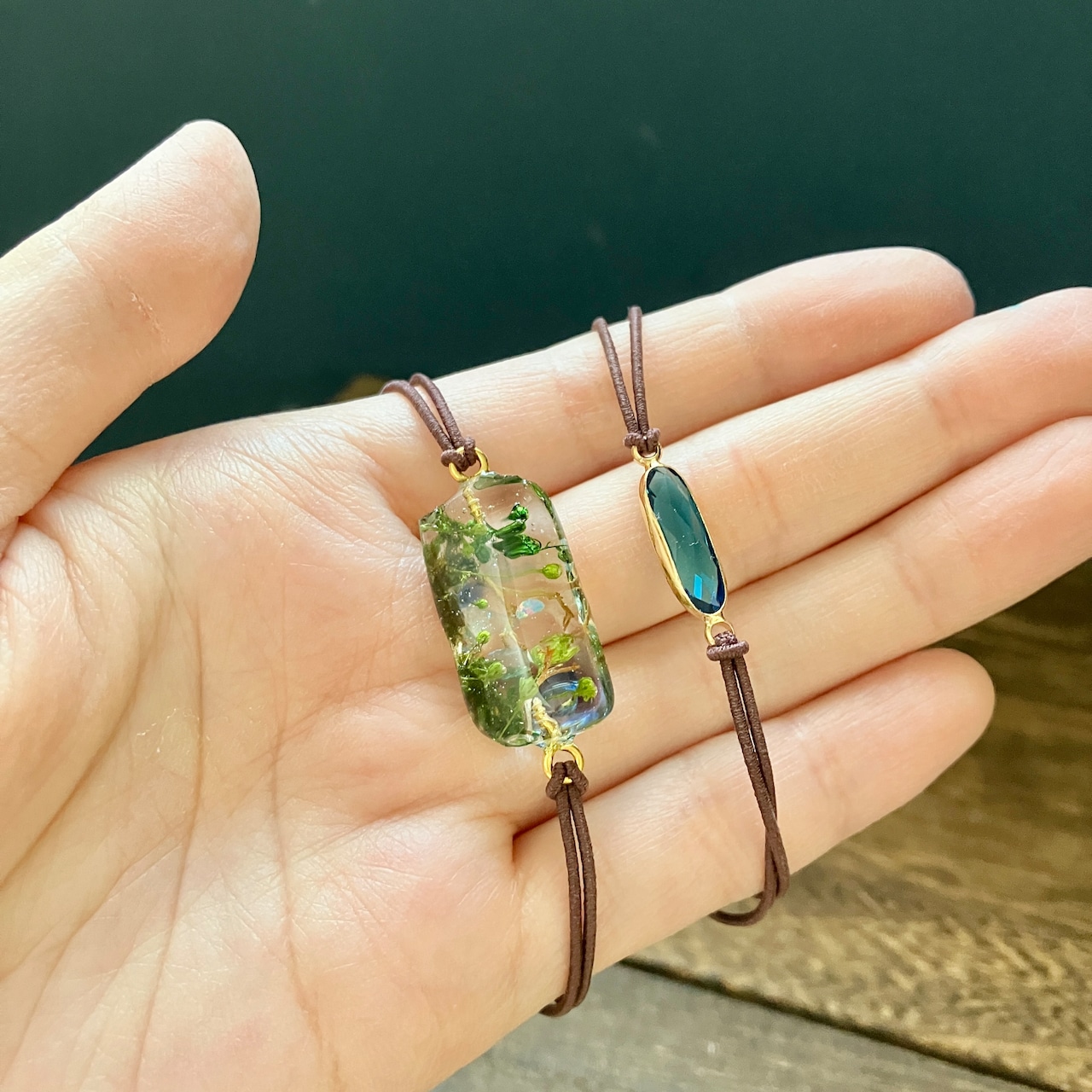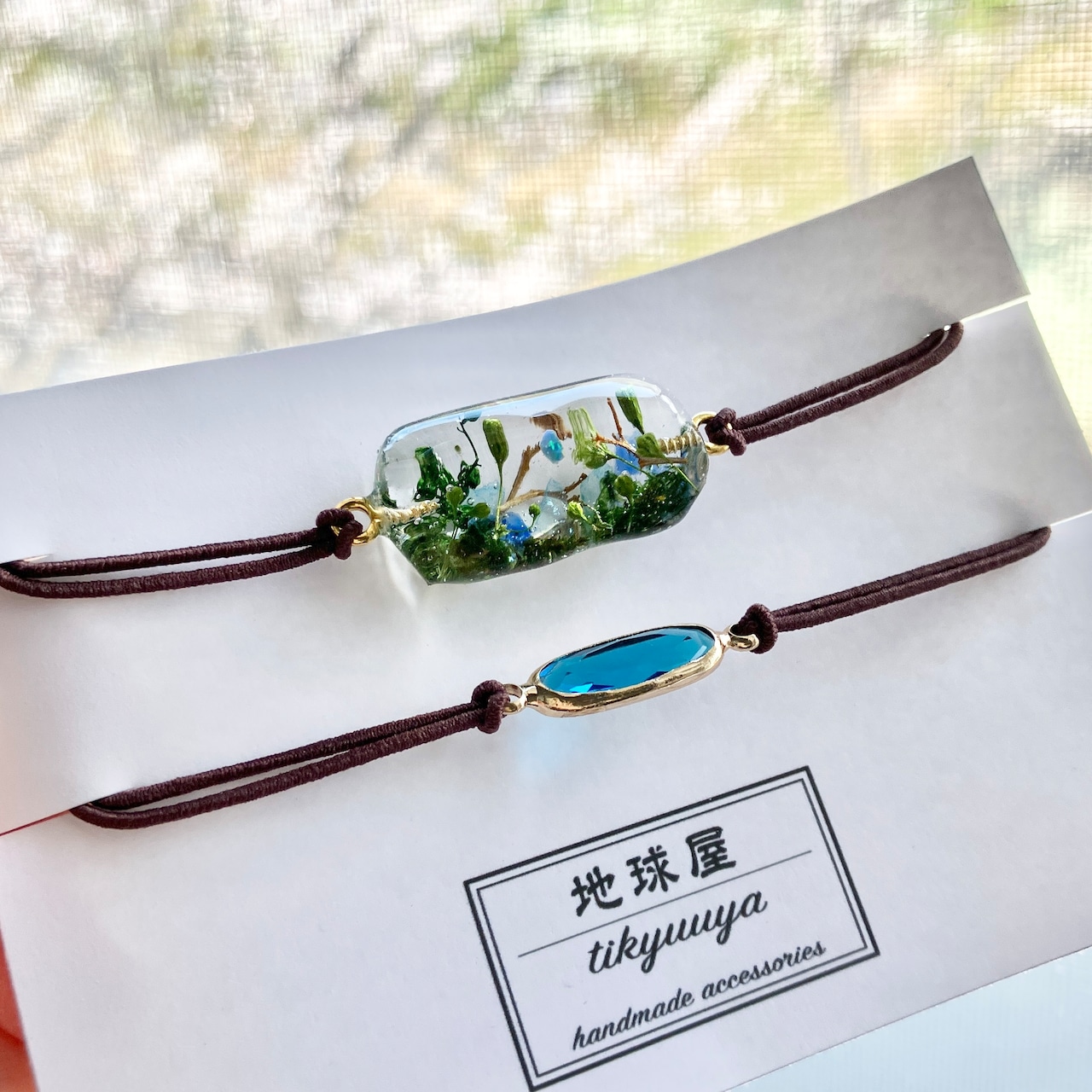 ガラスチャームのシンプルなヘアゴム ブレスと一緒に重ねづけにおすすめな2色セットです^ ^