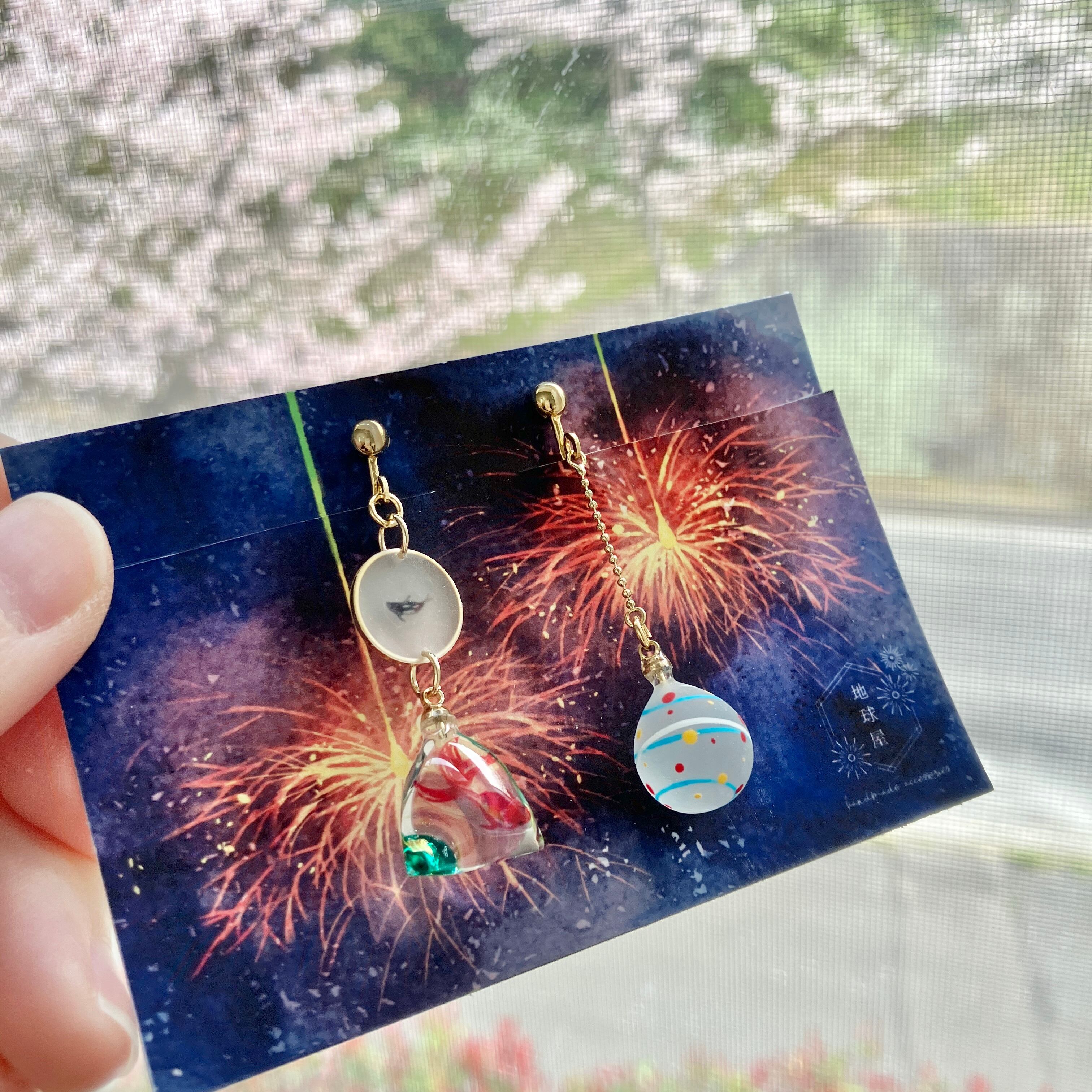 金魚すくいと小さな水風船のイヤリング