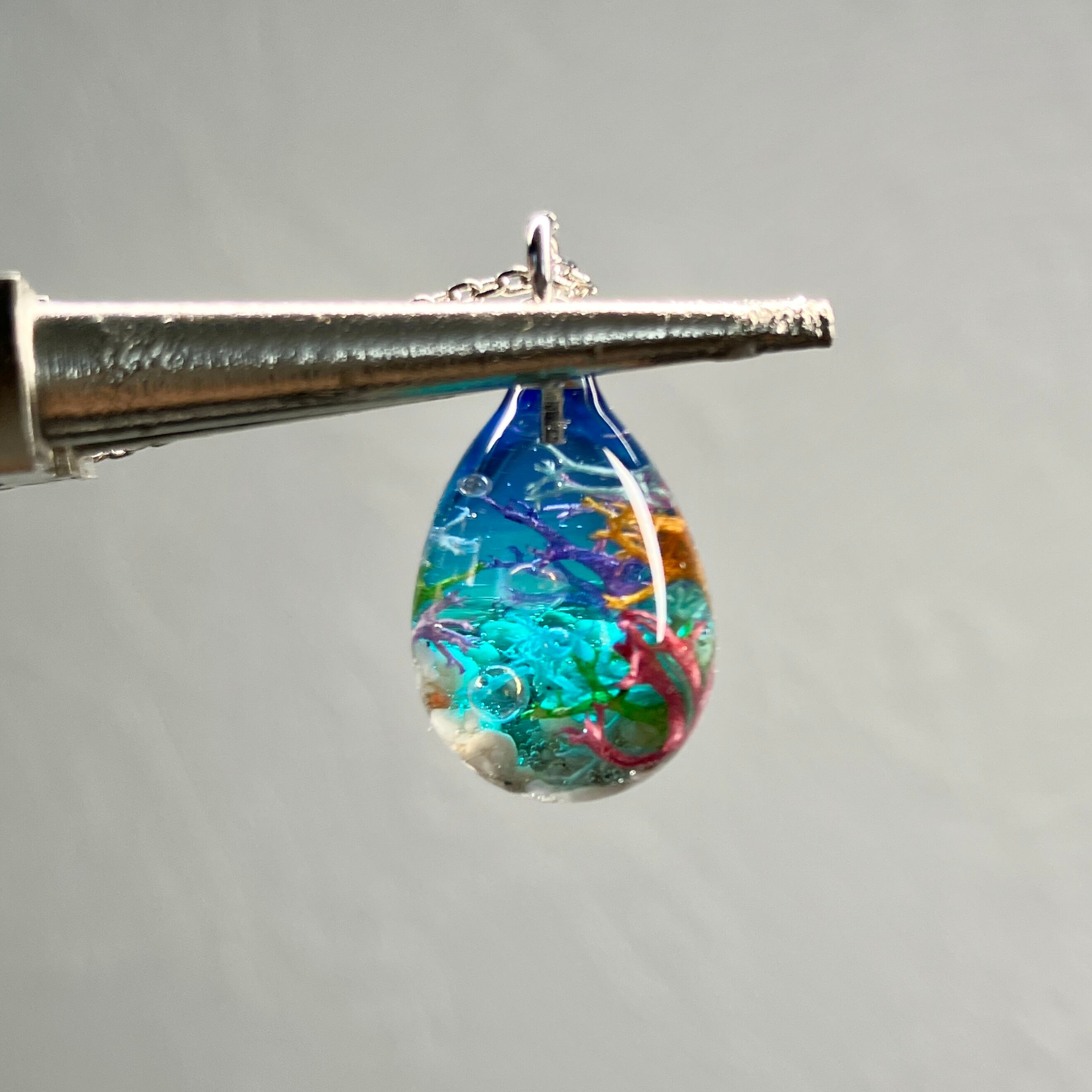 小さな卵ネックレス15ミリ「サンゴ礁」 ヒトデチャーム付き
