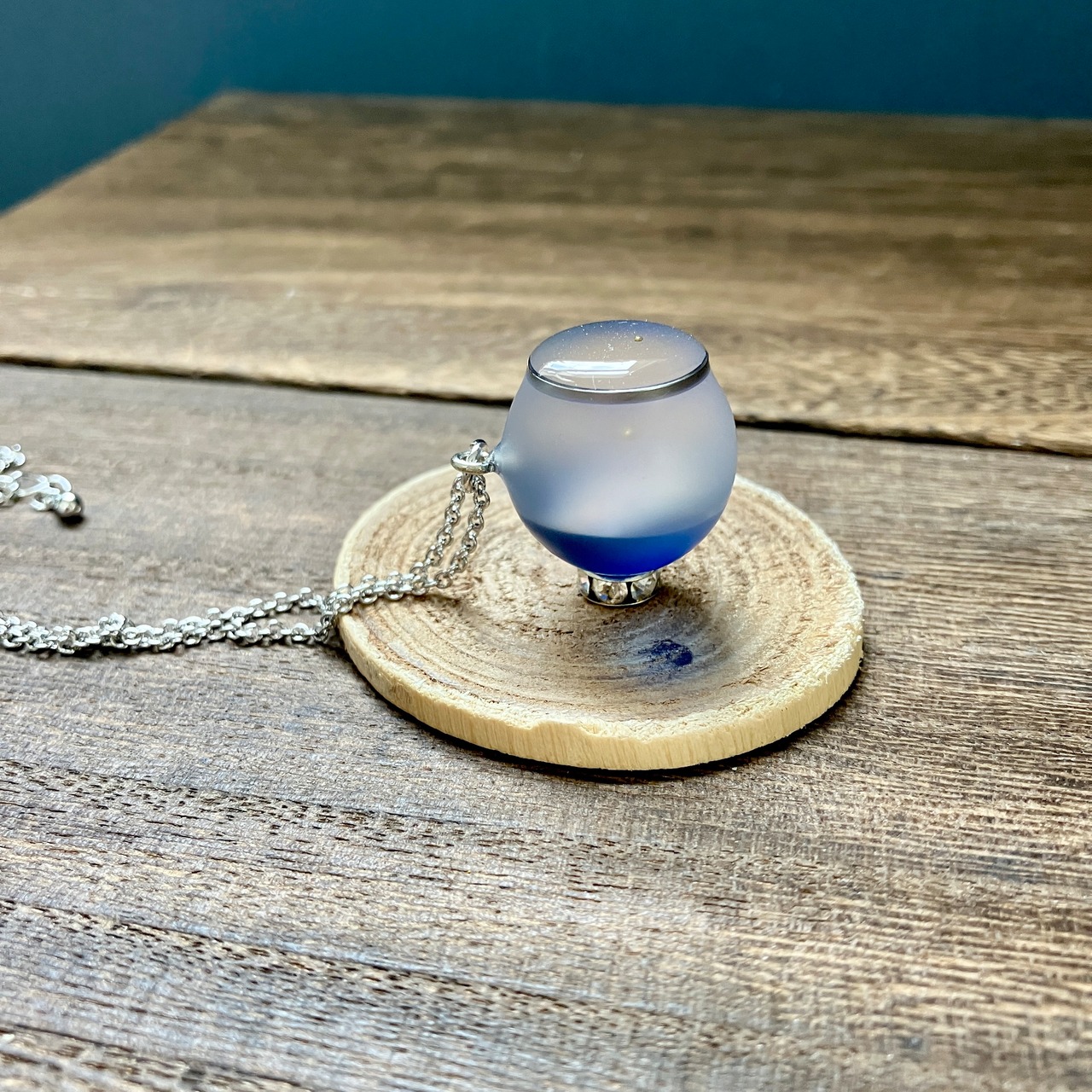 磨りガラスのようなマット加工と中央の窓からは小さな球体に広がる世界を覗き込めます。