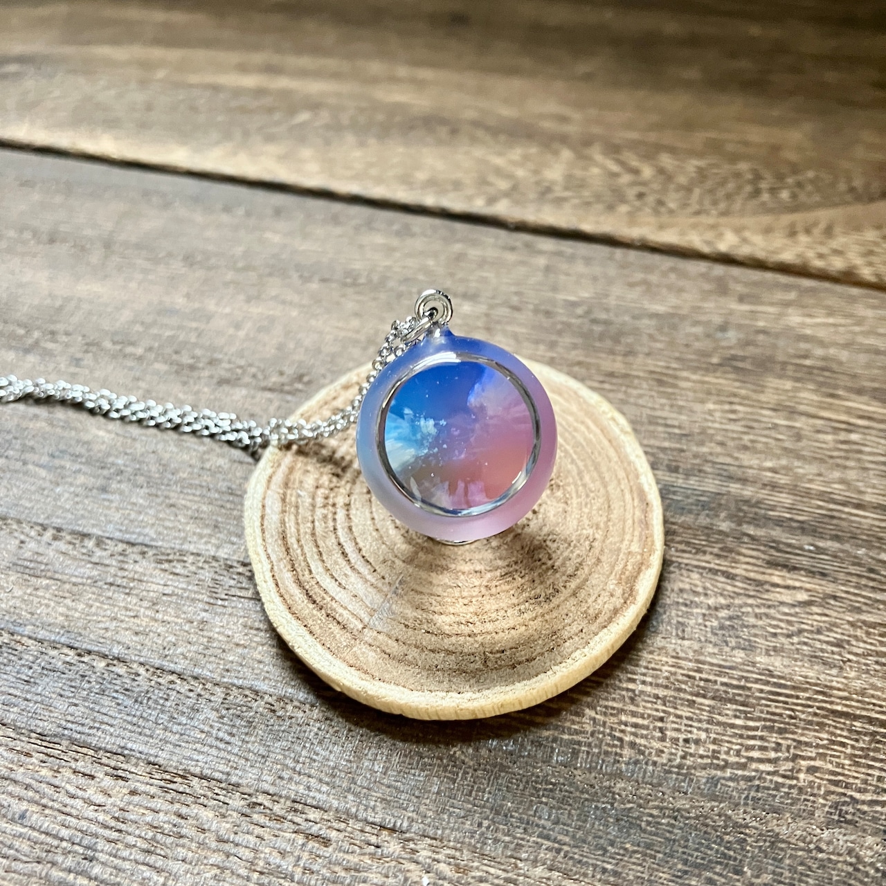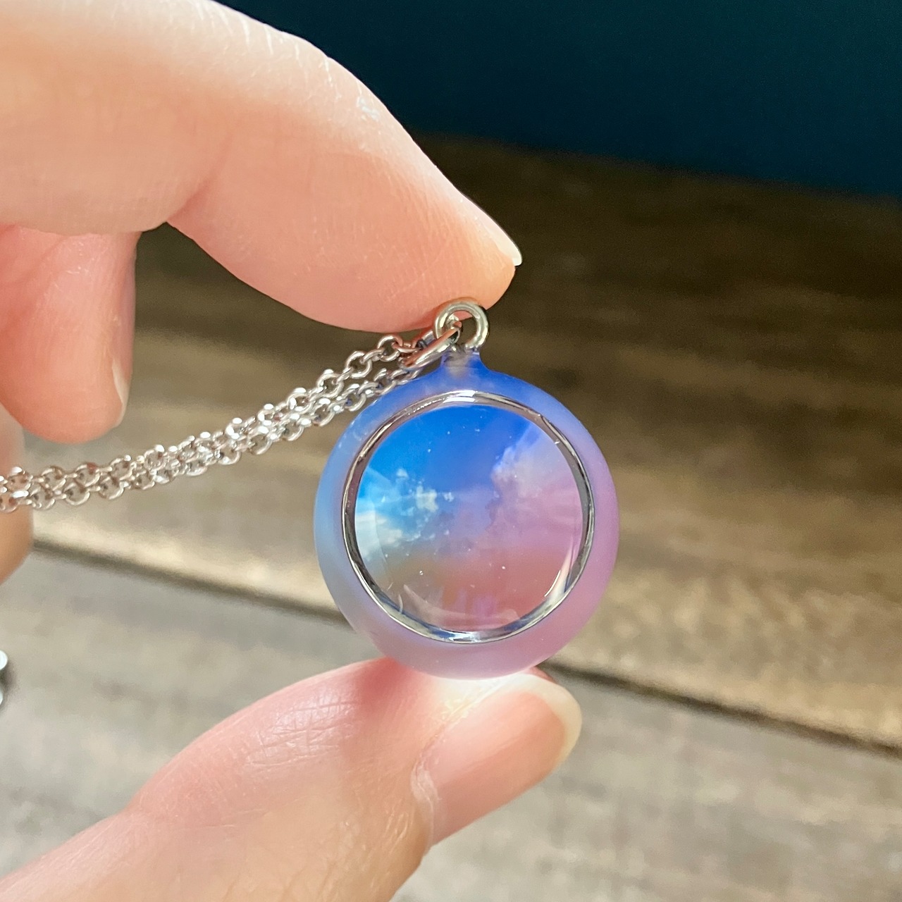 磨りガラスのようなマット加工と中央の窓からは小さな球体に広がる一期一会の空がを覗き込めます。