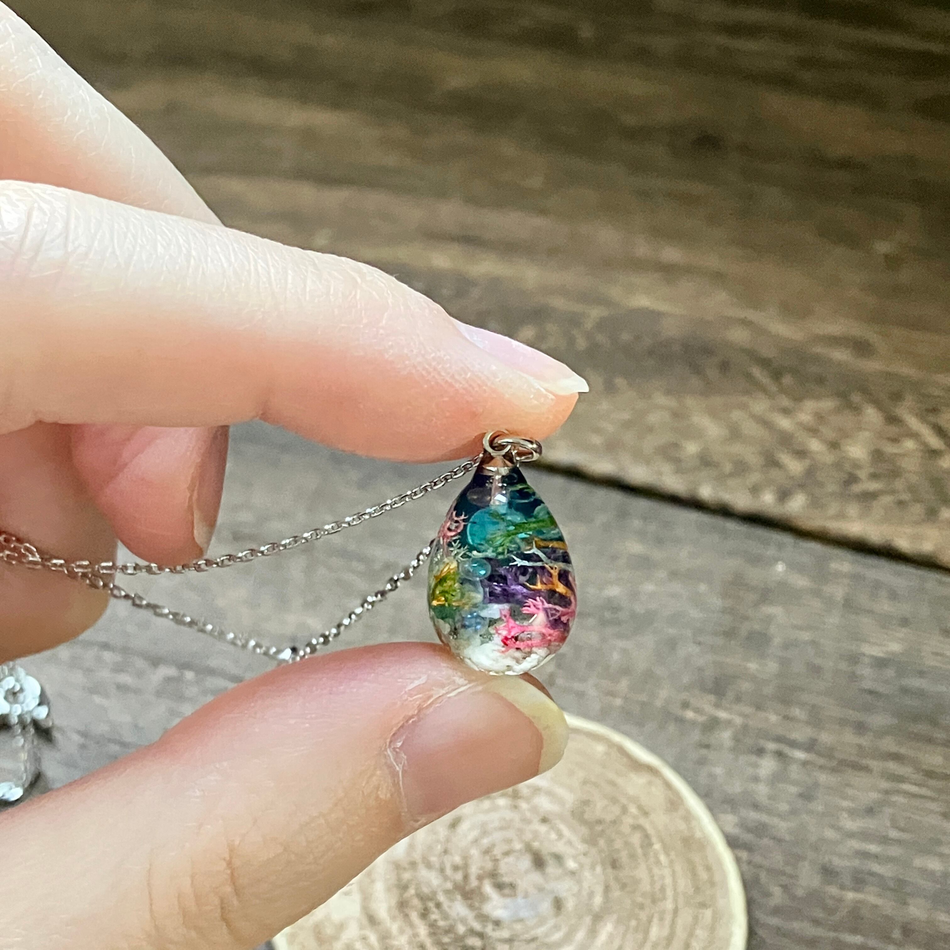 小さな卵ネックレス15ミリ「サンゴ礁」 ヒトデチャーム付き