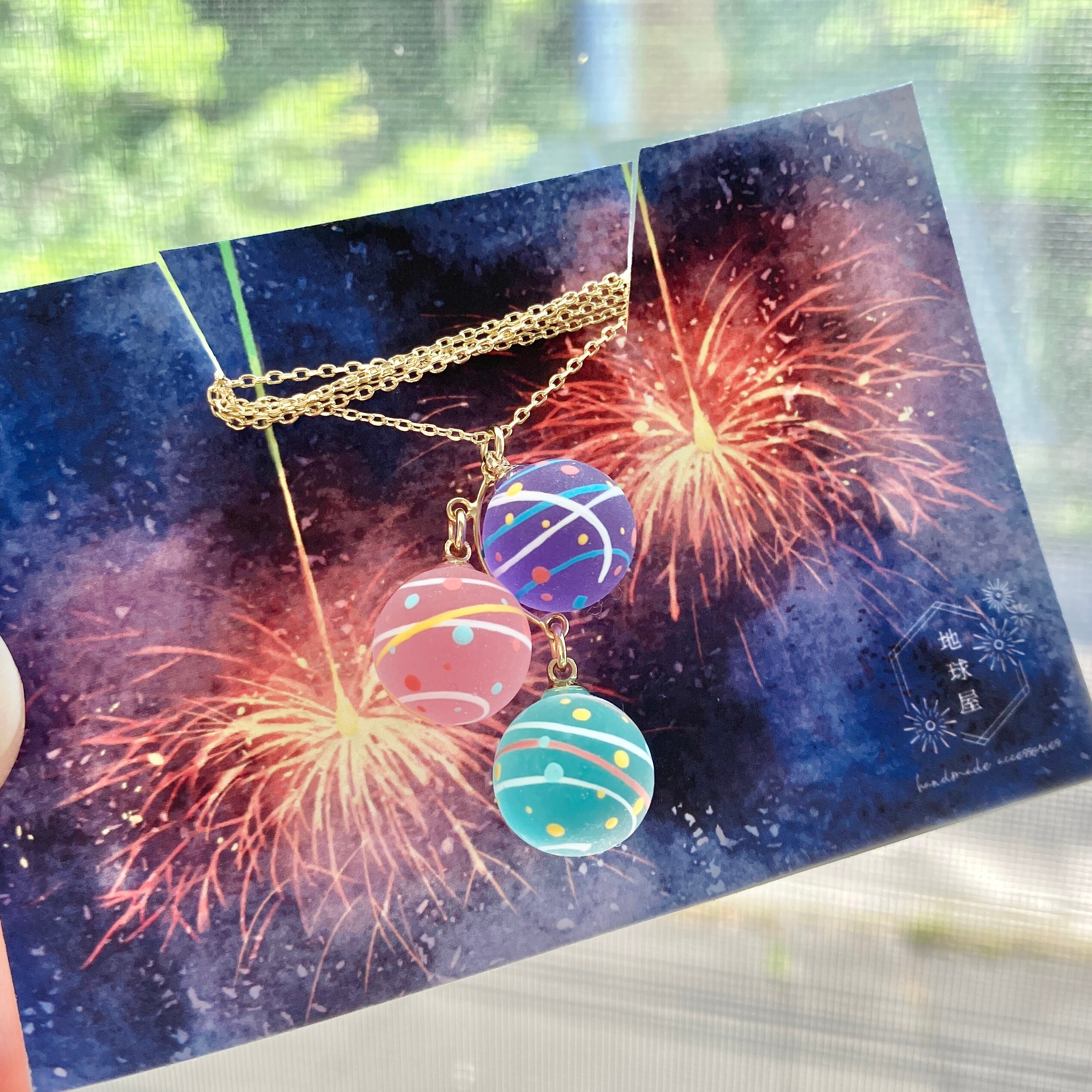 小さな水風船を3色組み合わせてネックレスに仕立てました。