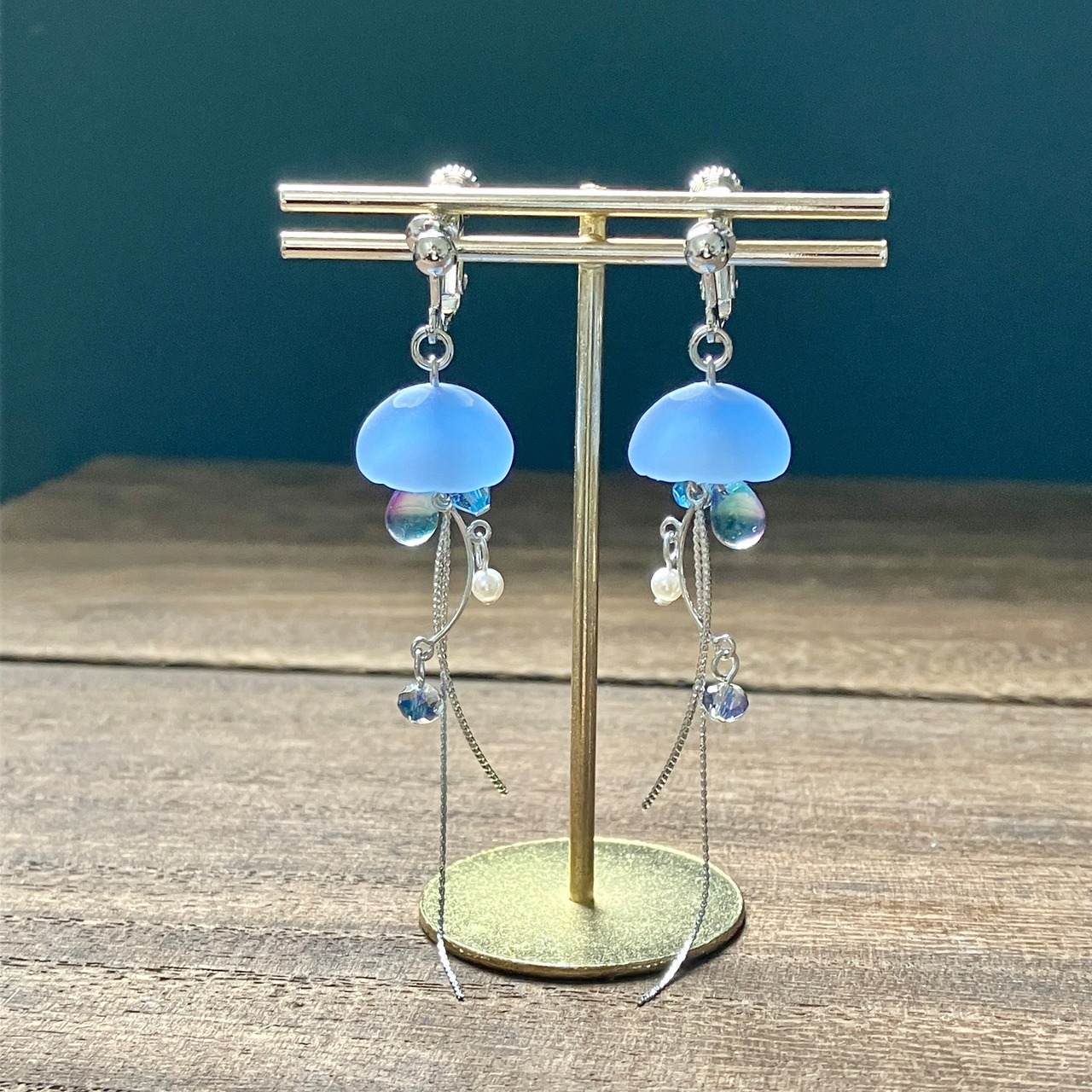 海月をモチーフにしたゆらゆら揺れる耳飾り。