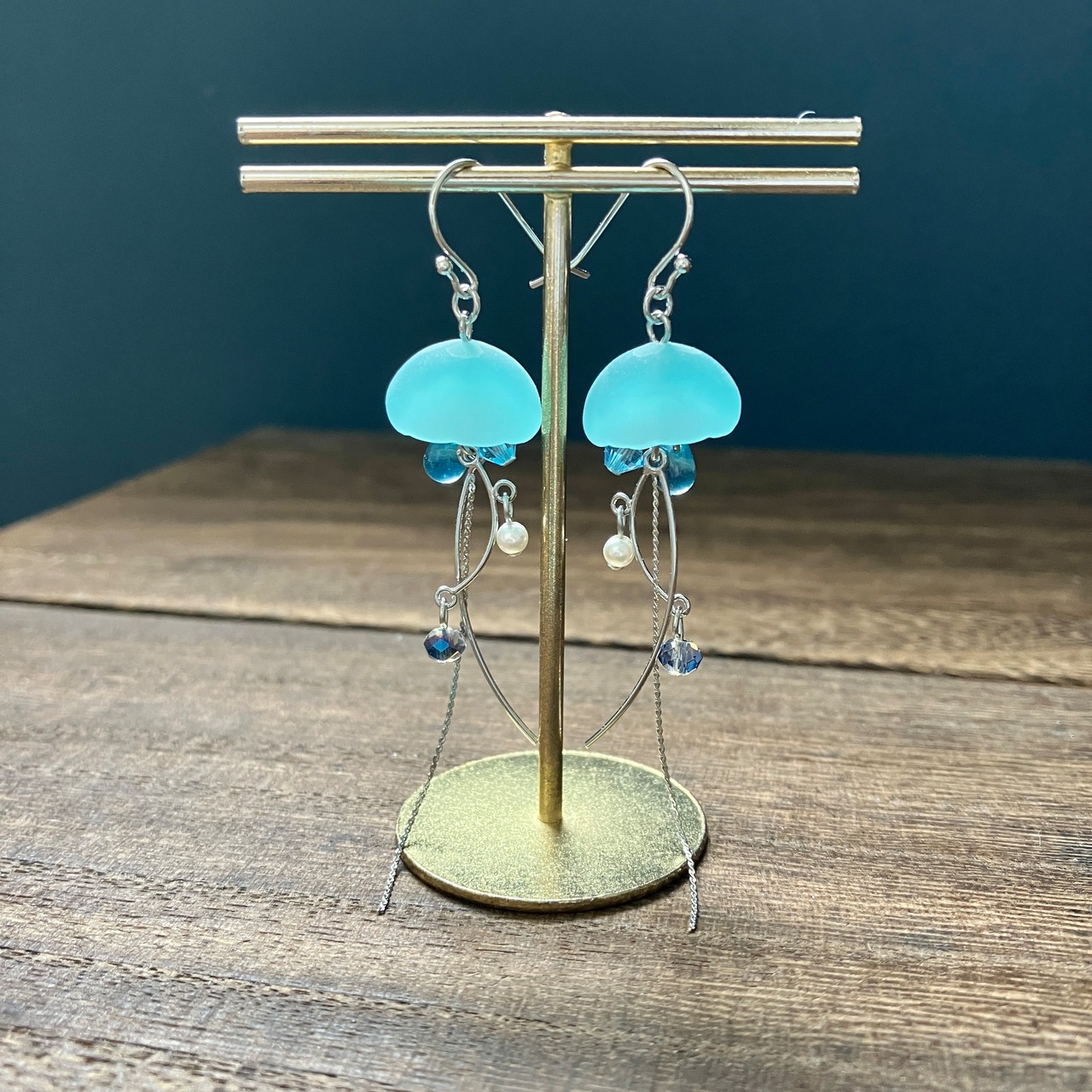海月をモチーフにしたゆらゆら揺れる耳飾り。