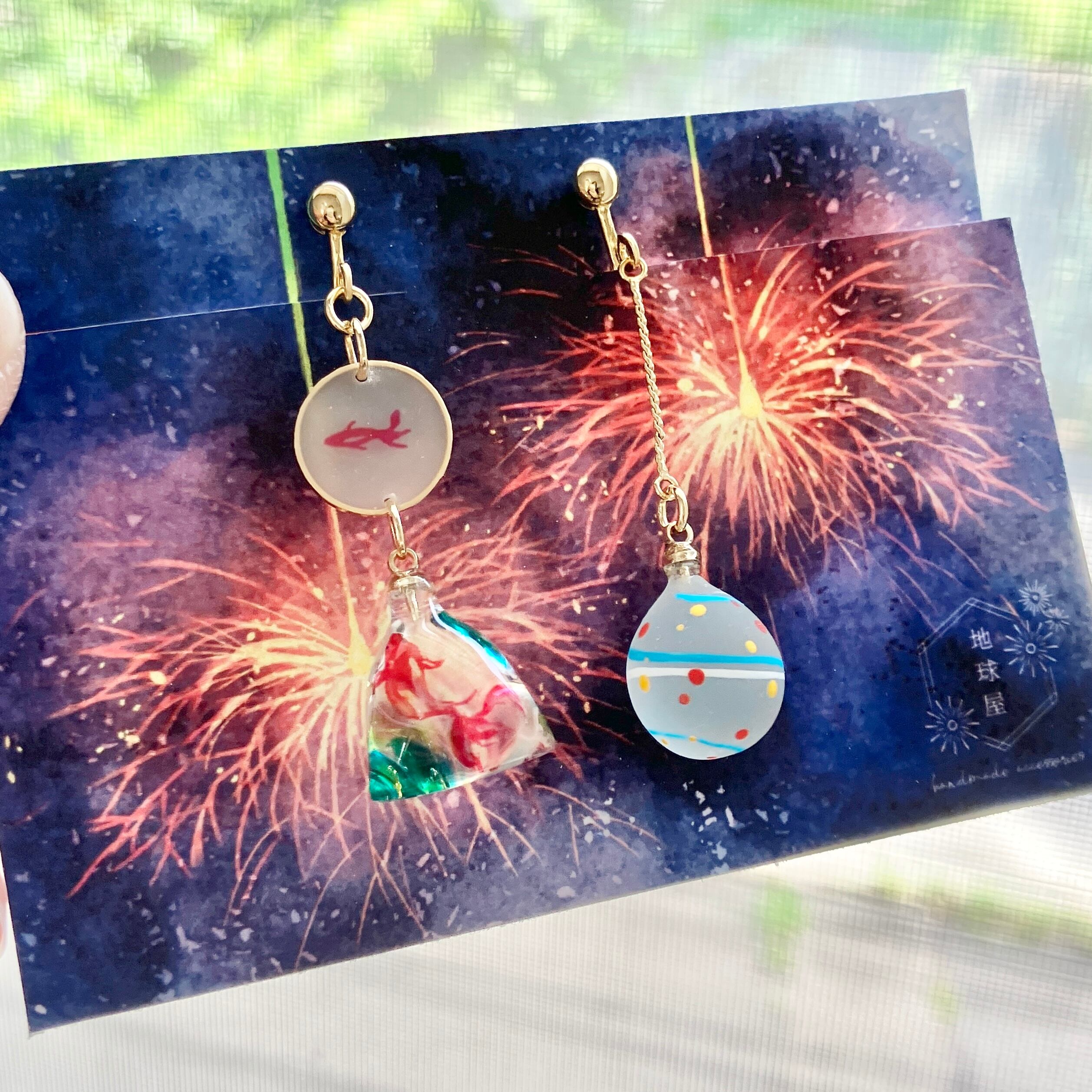 手描き模様の水風船とポイ付きの金魚すくいモチーフに涼しげな世界を閉じ込めました(^^)
