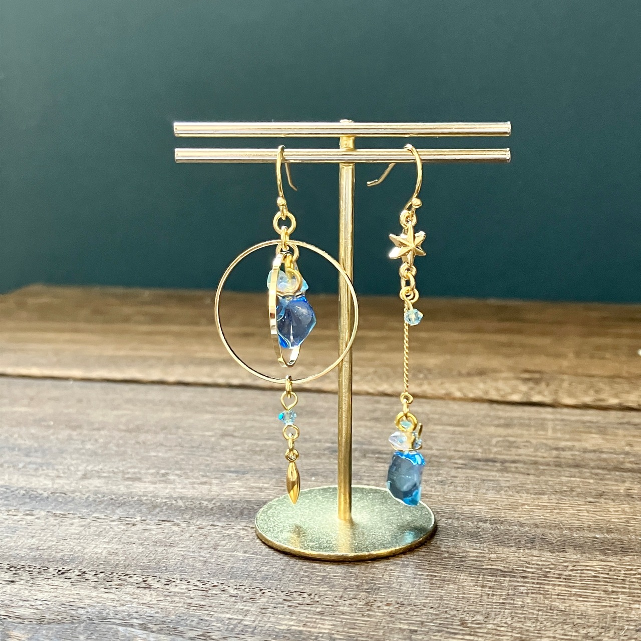 繊細な鉱石を星モチーフの金具で彩り、ファンタジー雰囲気の漂う耳飾りに仕上げました。