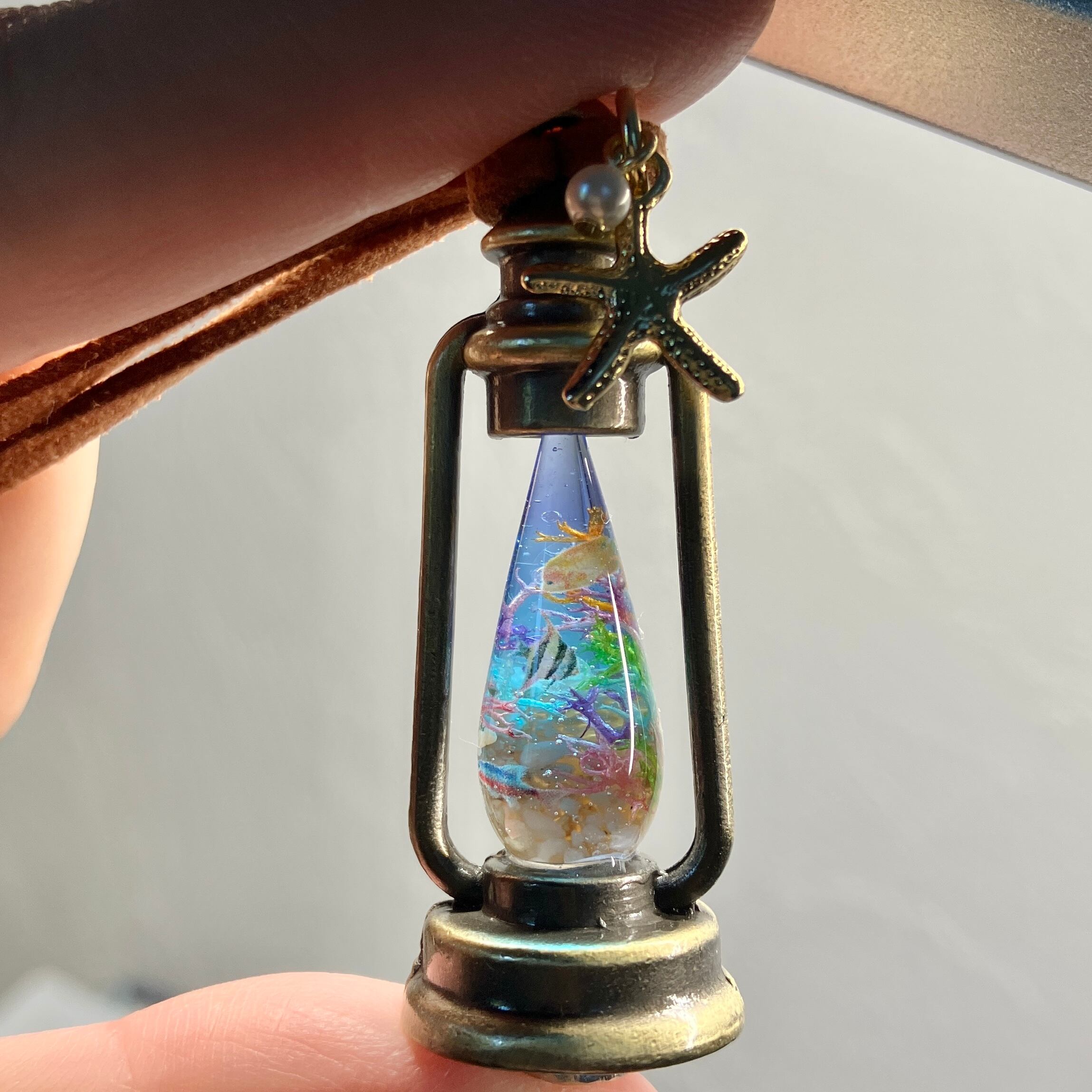 訳ありサンゴ礁のランタンペンダント(ヒトデチャーム付き)