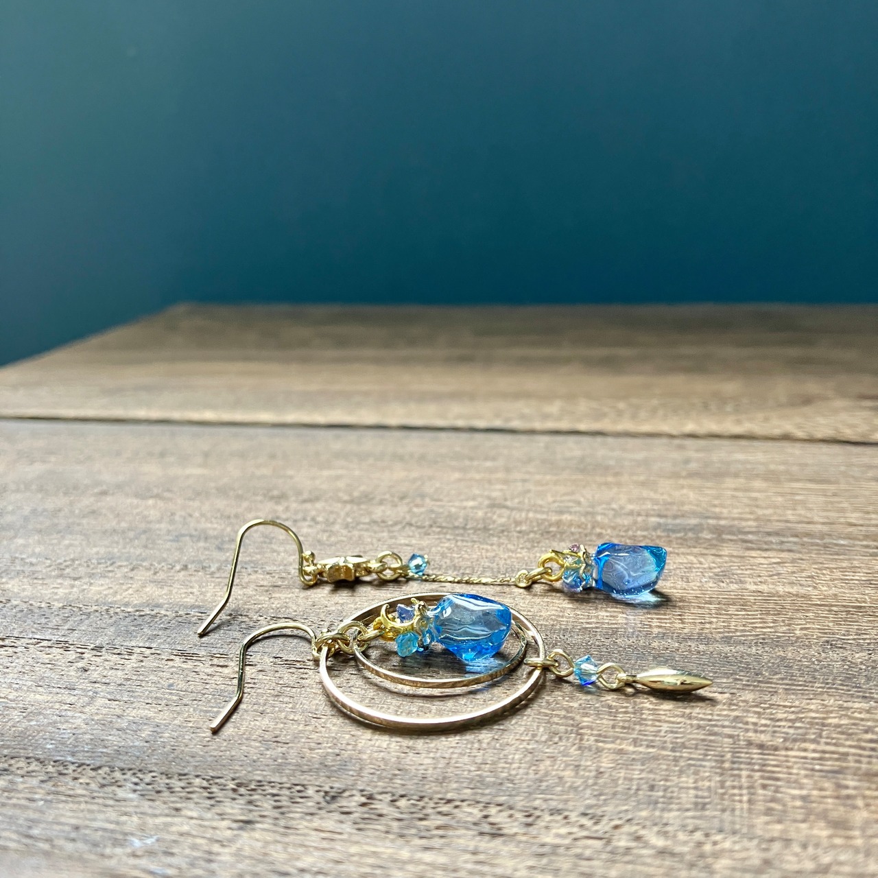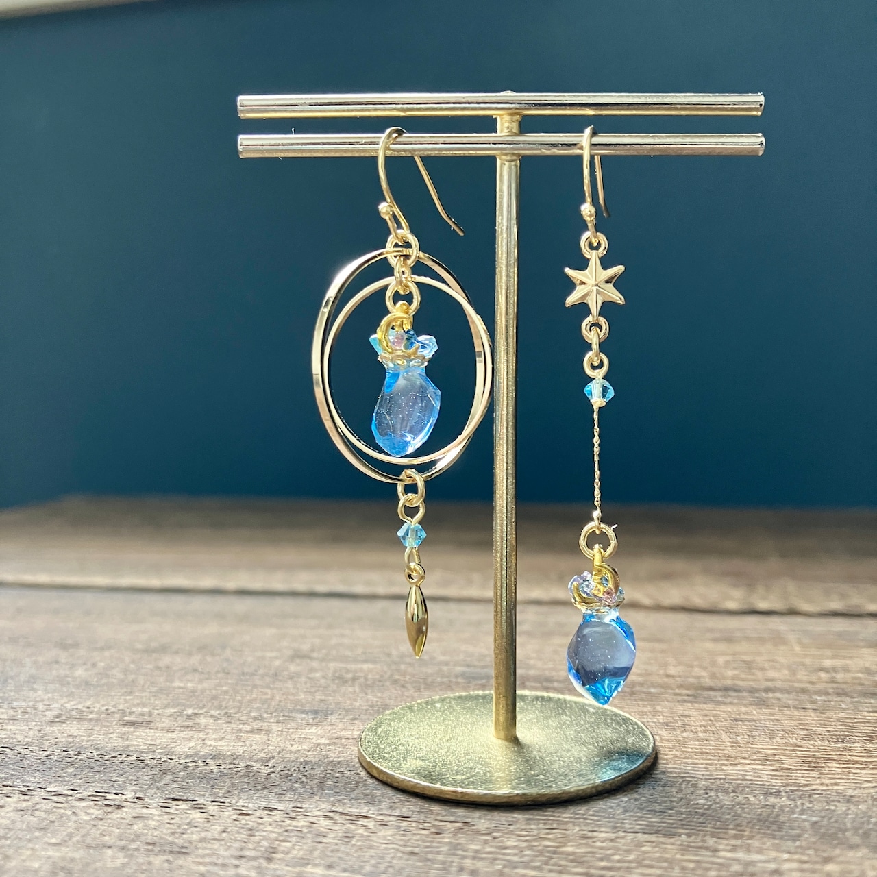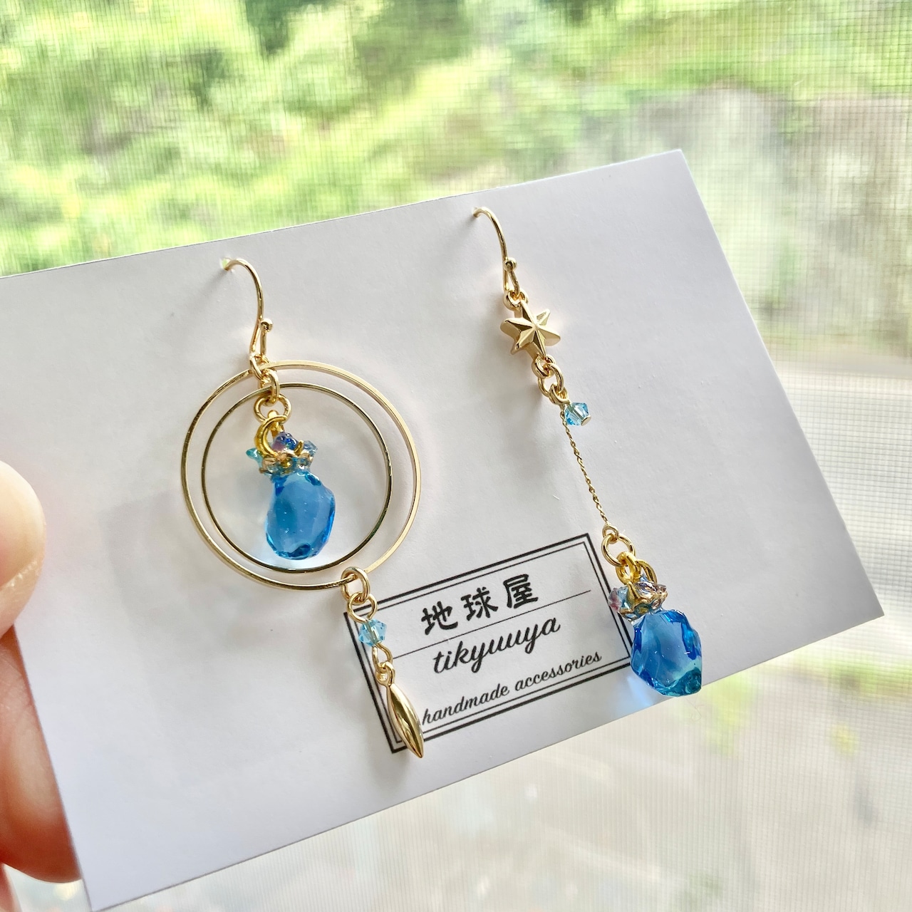 繊細な鉱石を星モチーフの金具で彩り、ファンタジー雰囲気の漂う耳飾りに仕上げました。