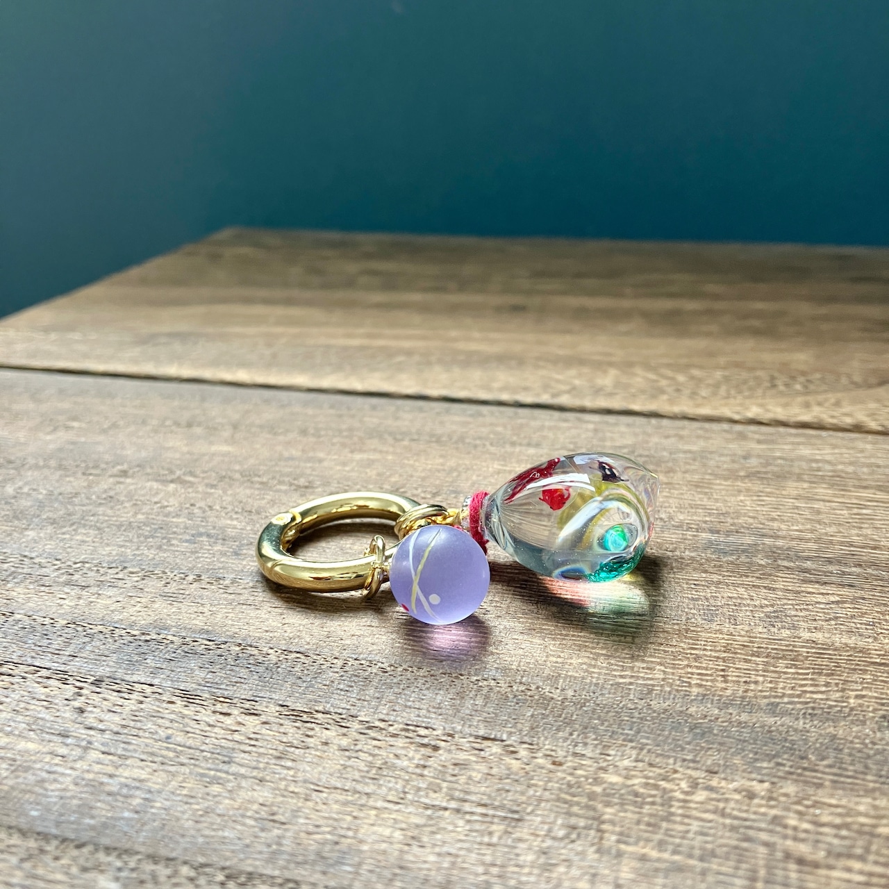 金魚袋にヨーヨーチャームを組み合わせた夏祭りの雰囲気を楽しめるキーホルダーを作りました。