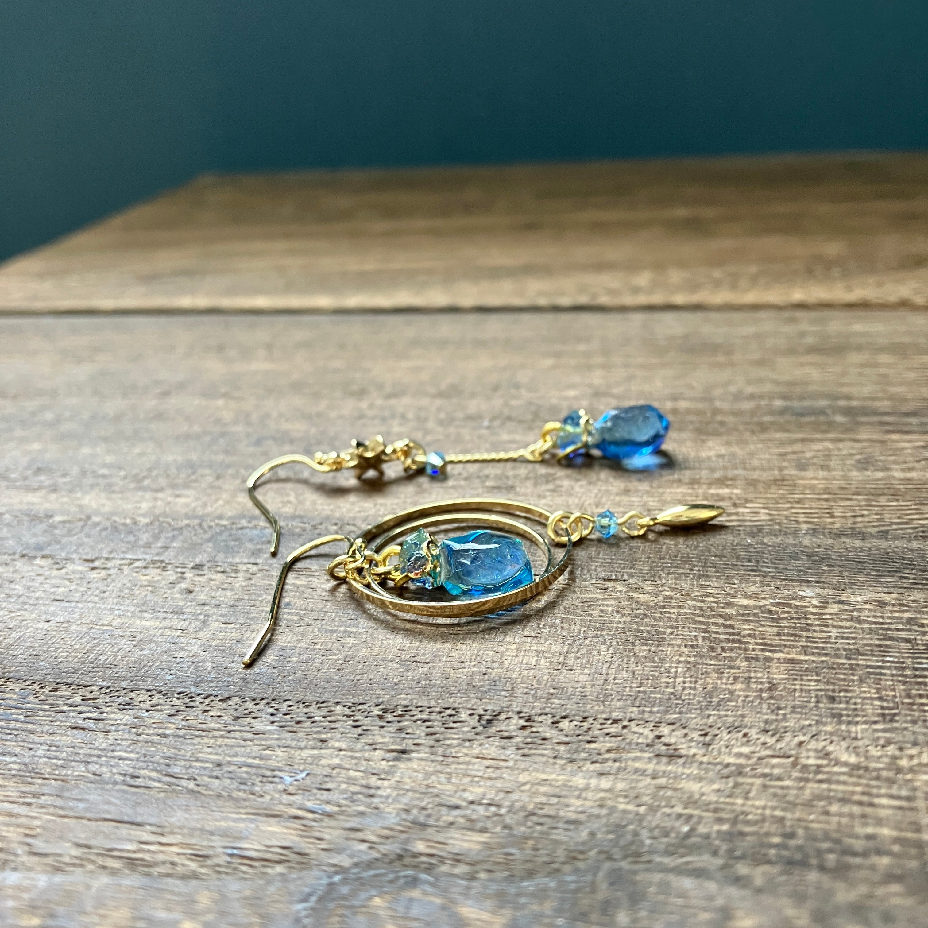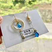 繊細な鉱石を星モチーフの金具で彩り、ファンタジー雰囲気の漂う耳飾りに仕上げました。