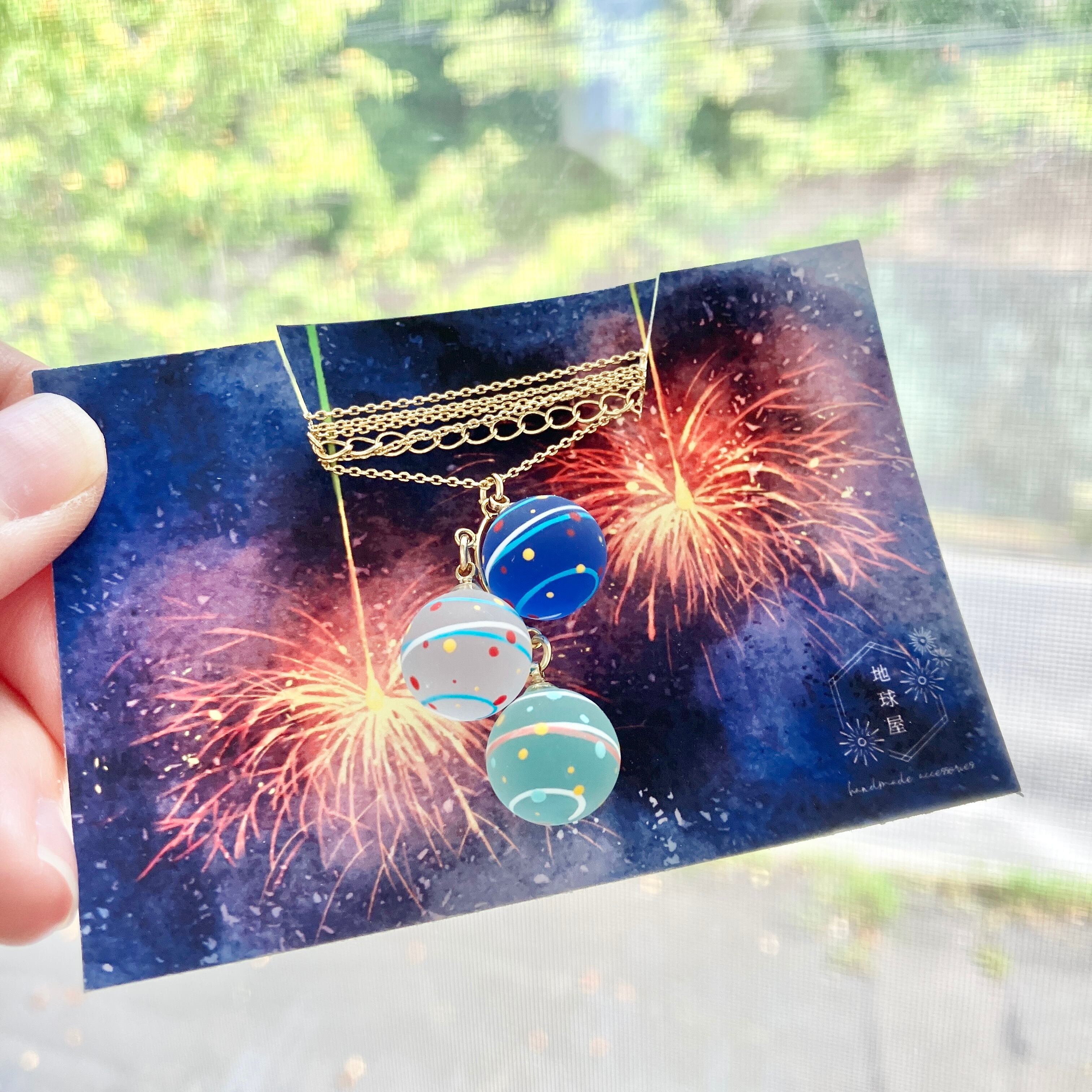 小さな水風船を3色組み合わせてネックレスに仕立てました。