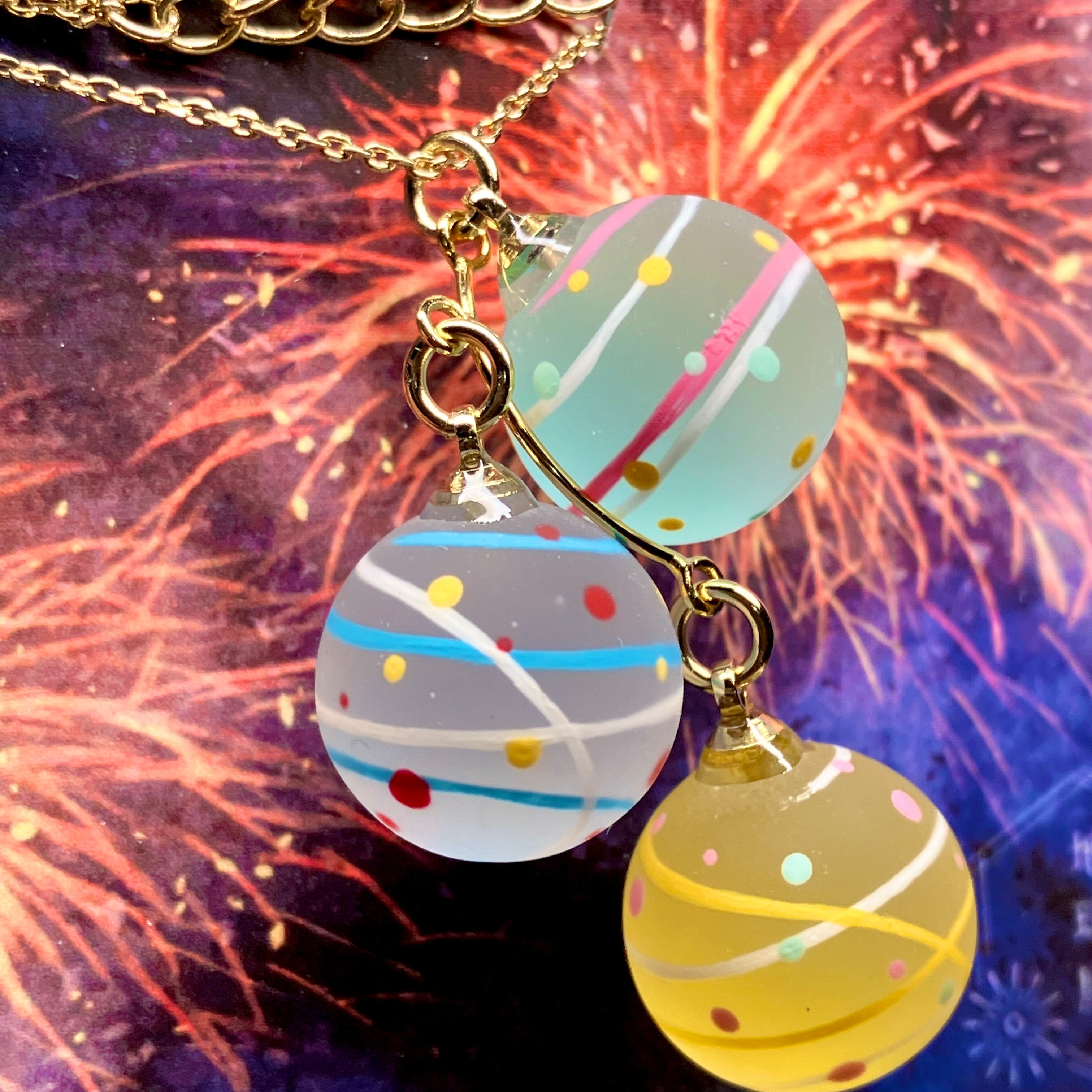 小さな水風船を3色組み合わせてネックレスに仕立てました。