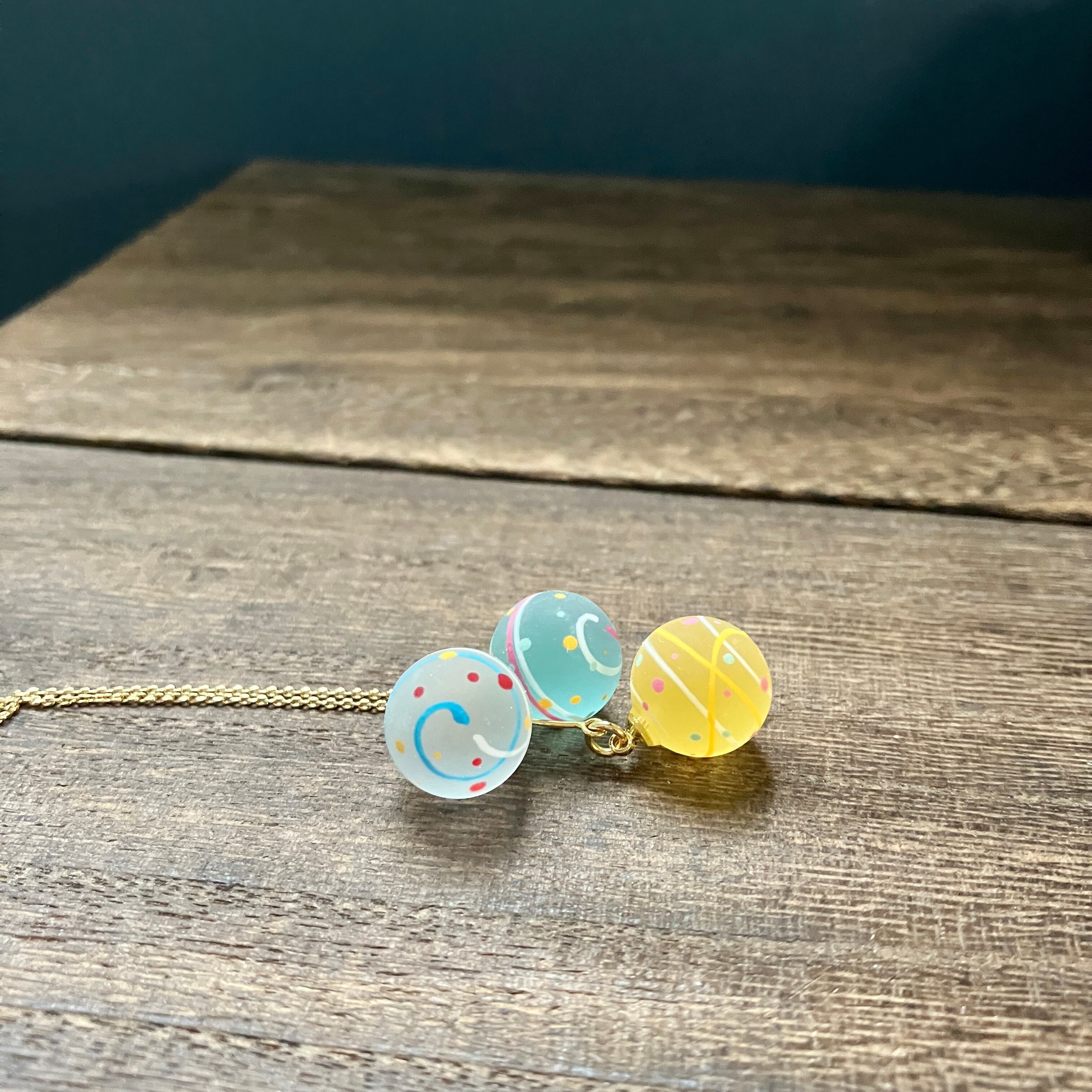 少し訳あり 小さな水風船3連ネックレス