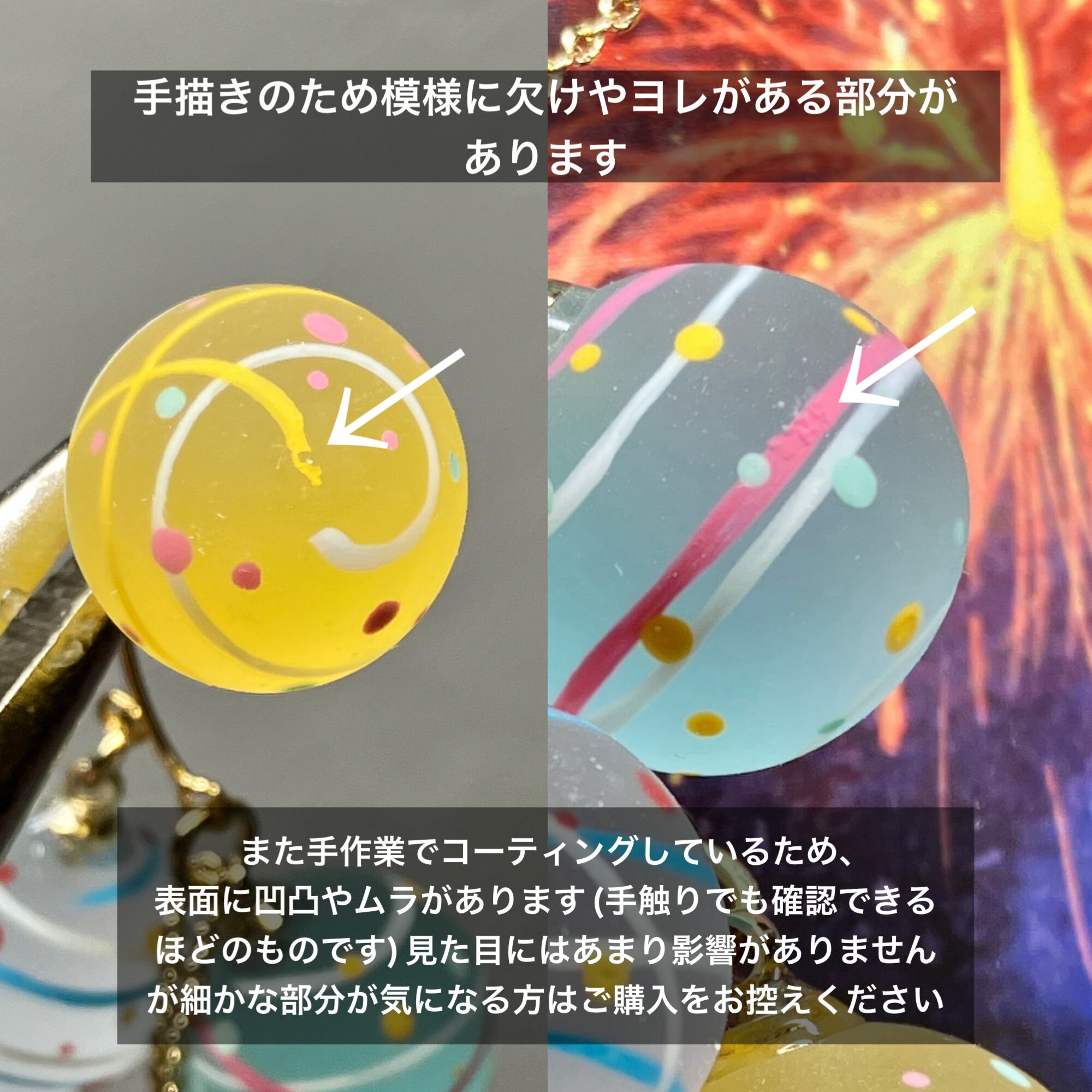 型に流し入れ硬化→研磨→コーティングの手作業で制作しておりますのでどうしてもコーティングムラや形の歪さが出ます。ハンドメイド作品にご理解頂ける方、ご購入お願い致します。