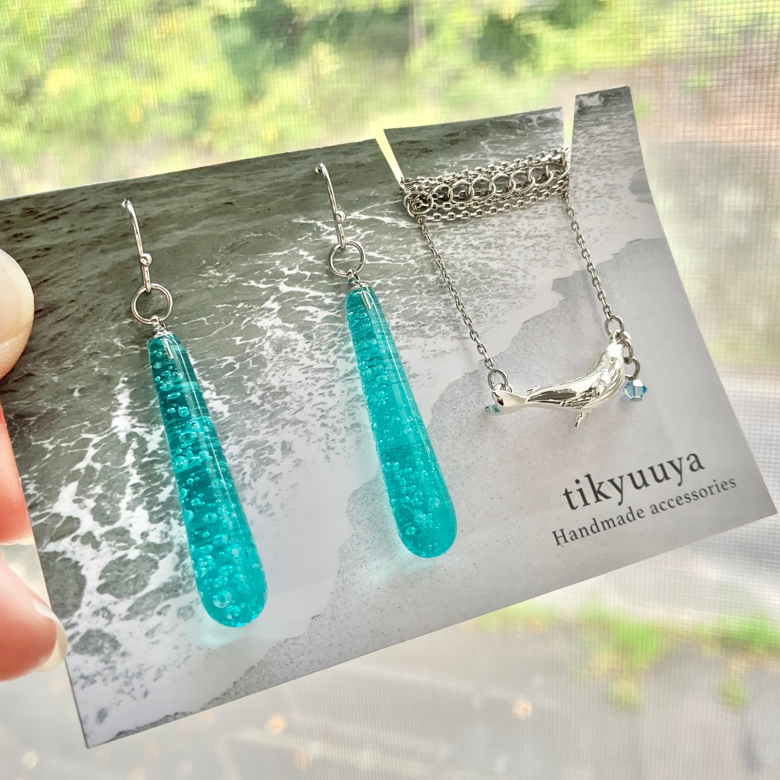 クジラチャームのネックレスとセットで爽やかな作品に仕上がりました。