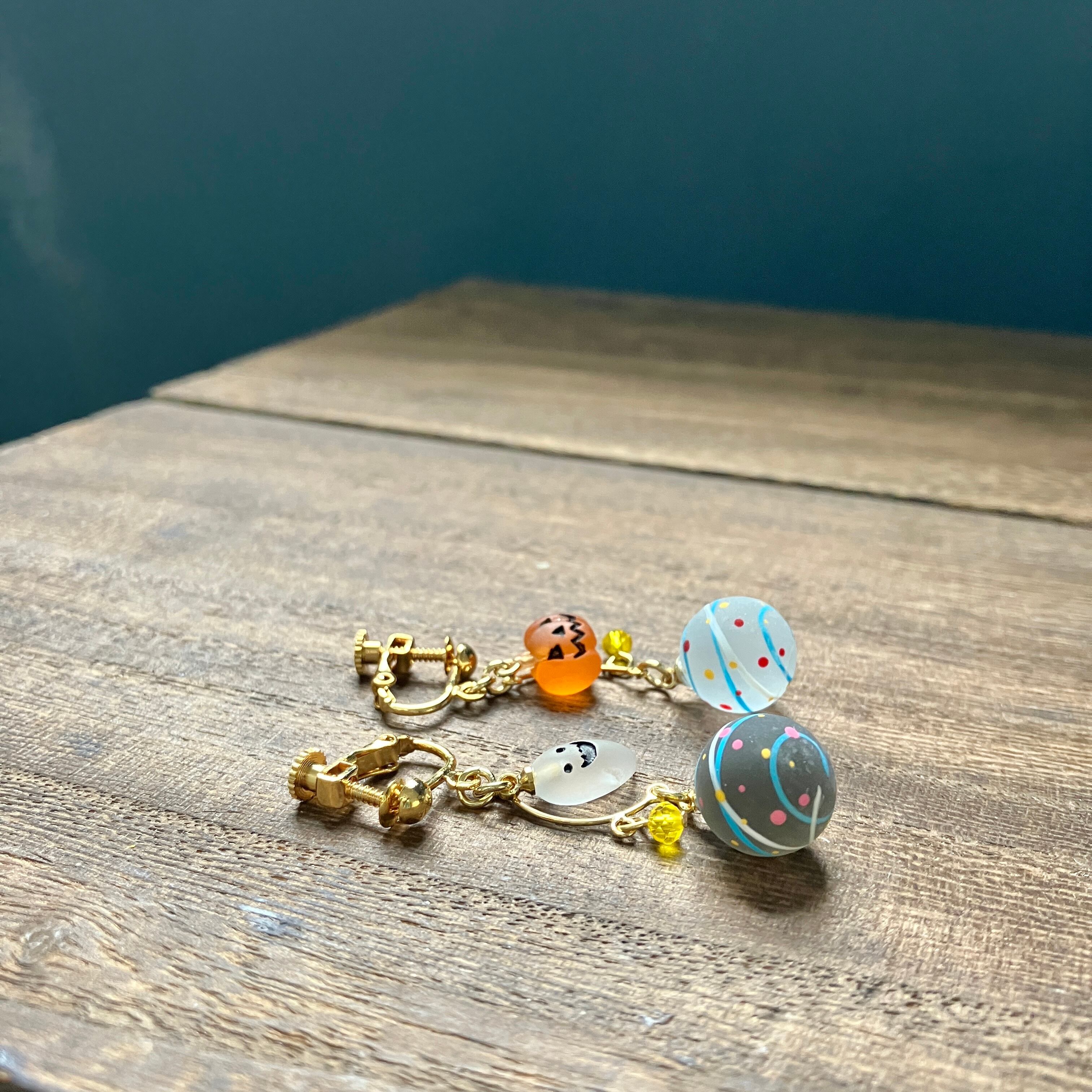 小さなおばけとかぼちゃのチャームを大人気の水風船レジンと組み合わせました。