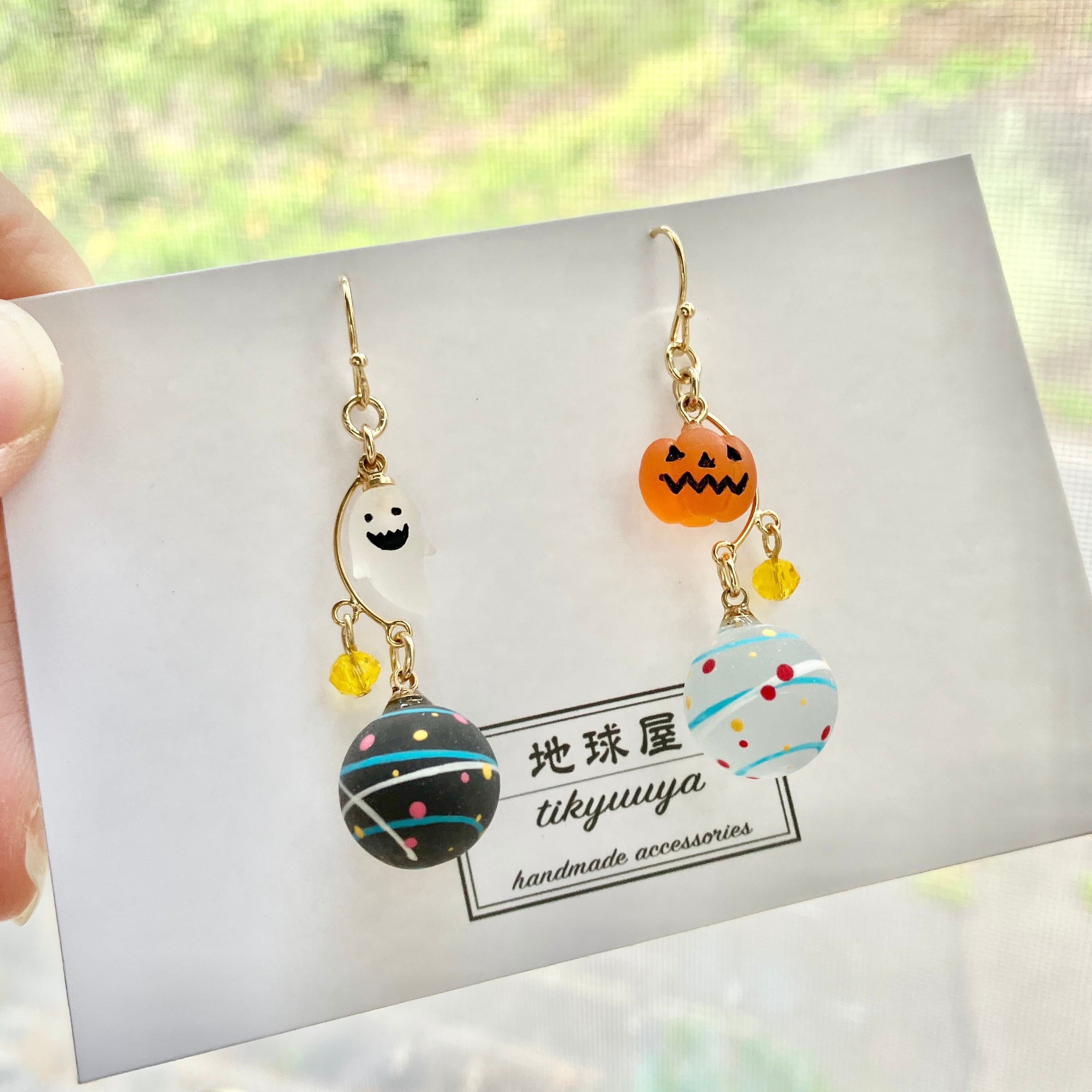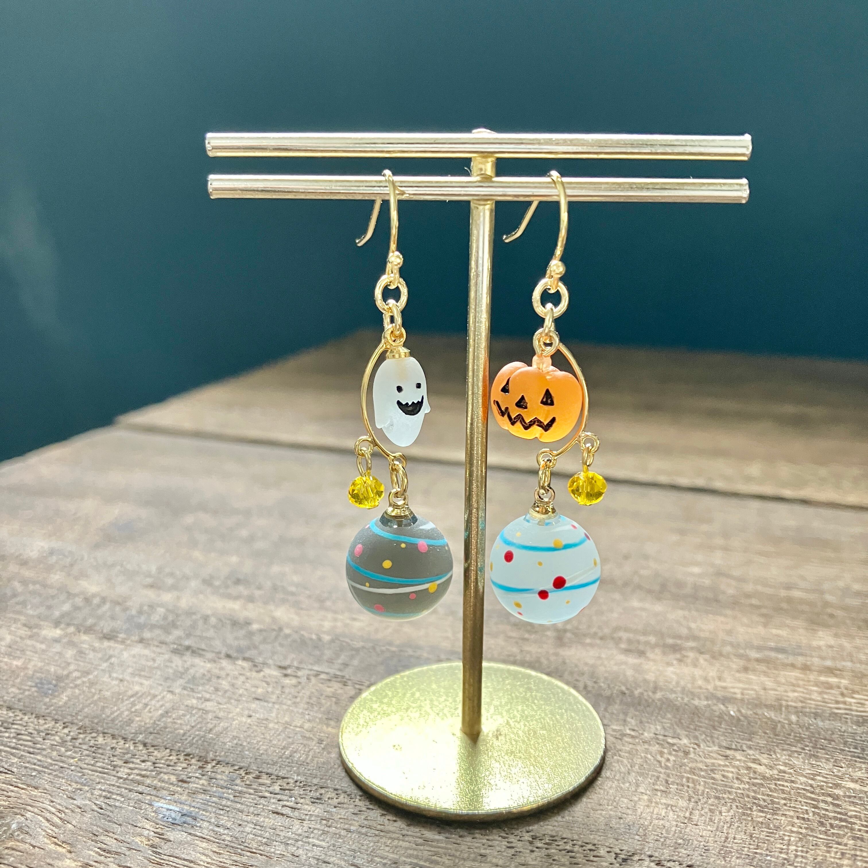 小さなおばけとかぼちゃのチャームを大人気の水風船レジンと組み合わせました。