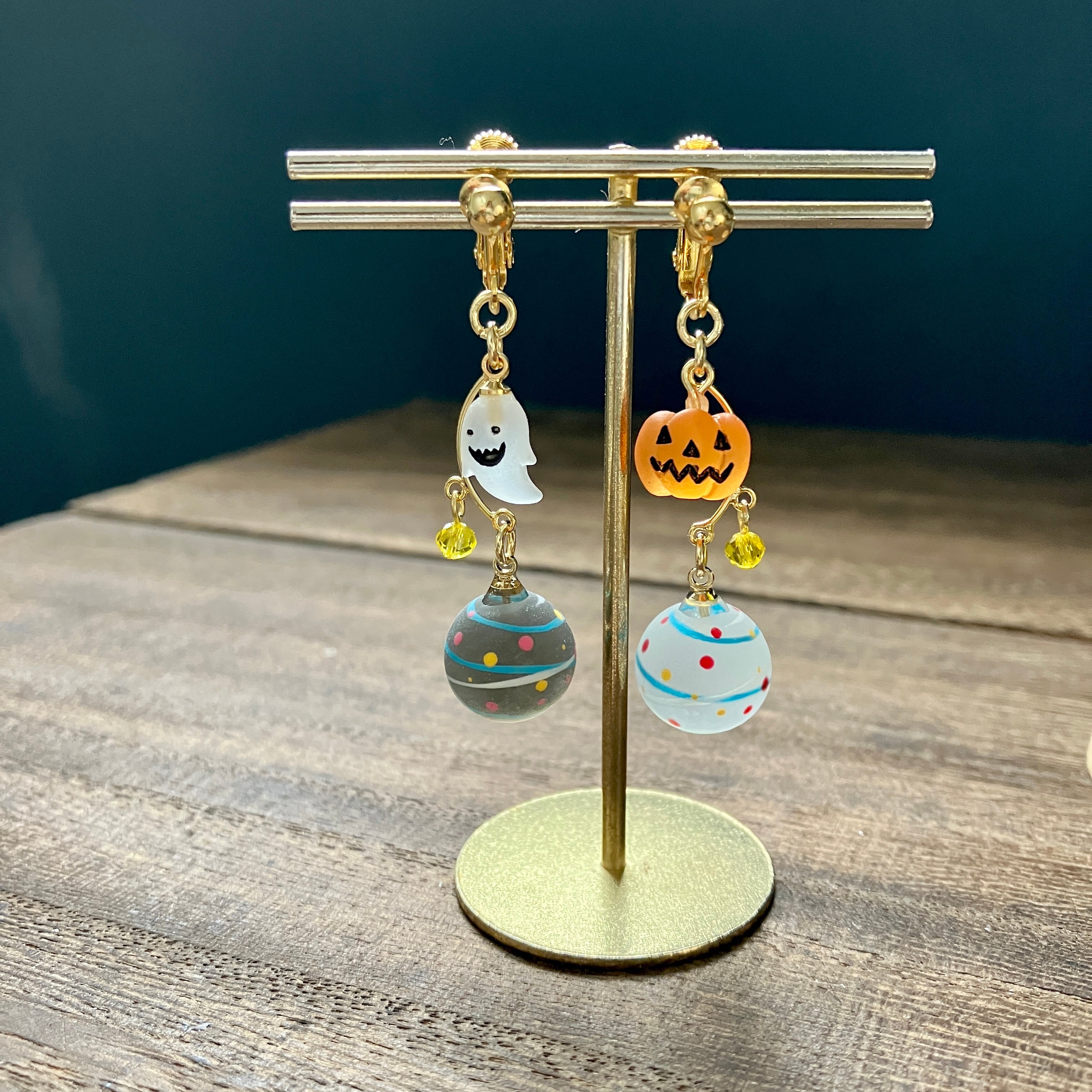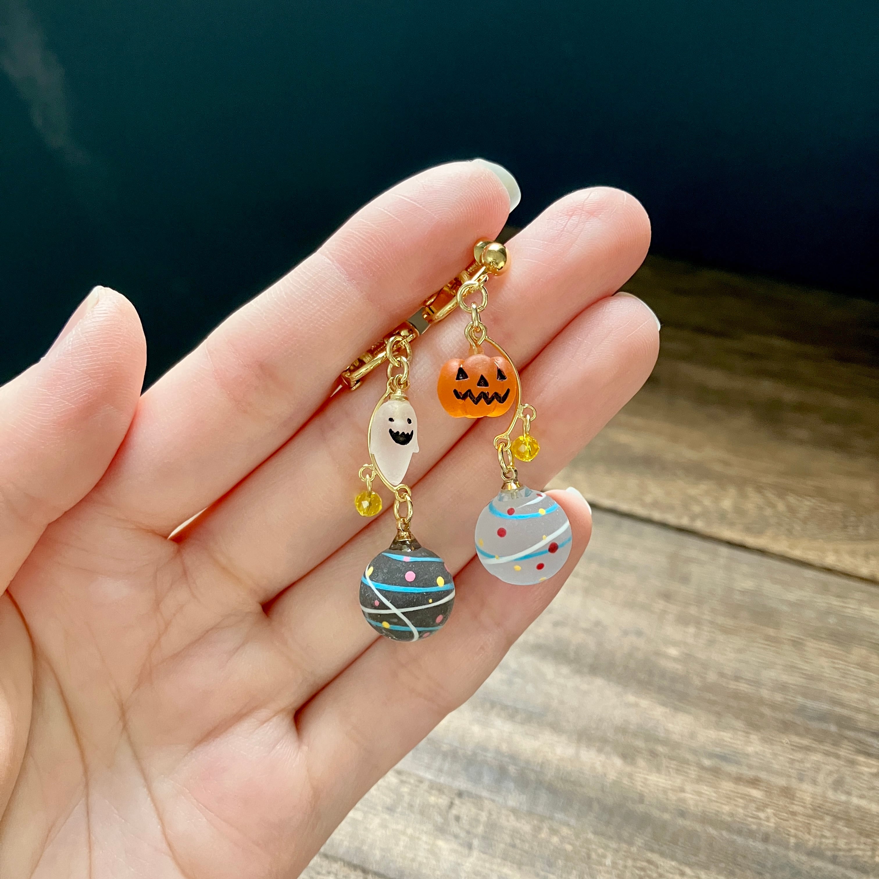 小さなおばけとかぼちゃのチャームを大人気の水風船レジンと組み合わせました。