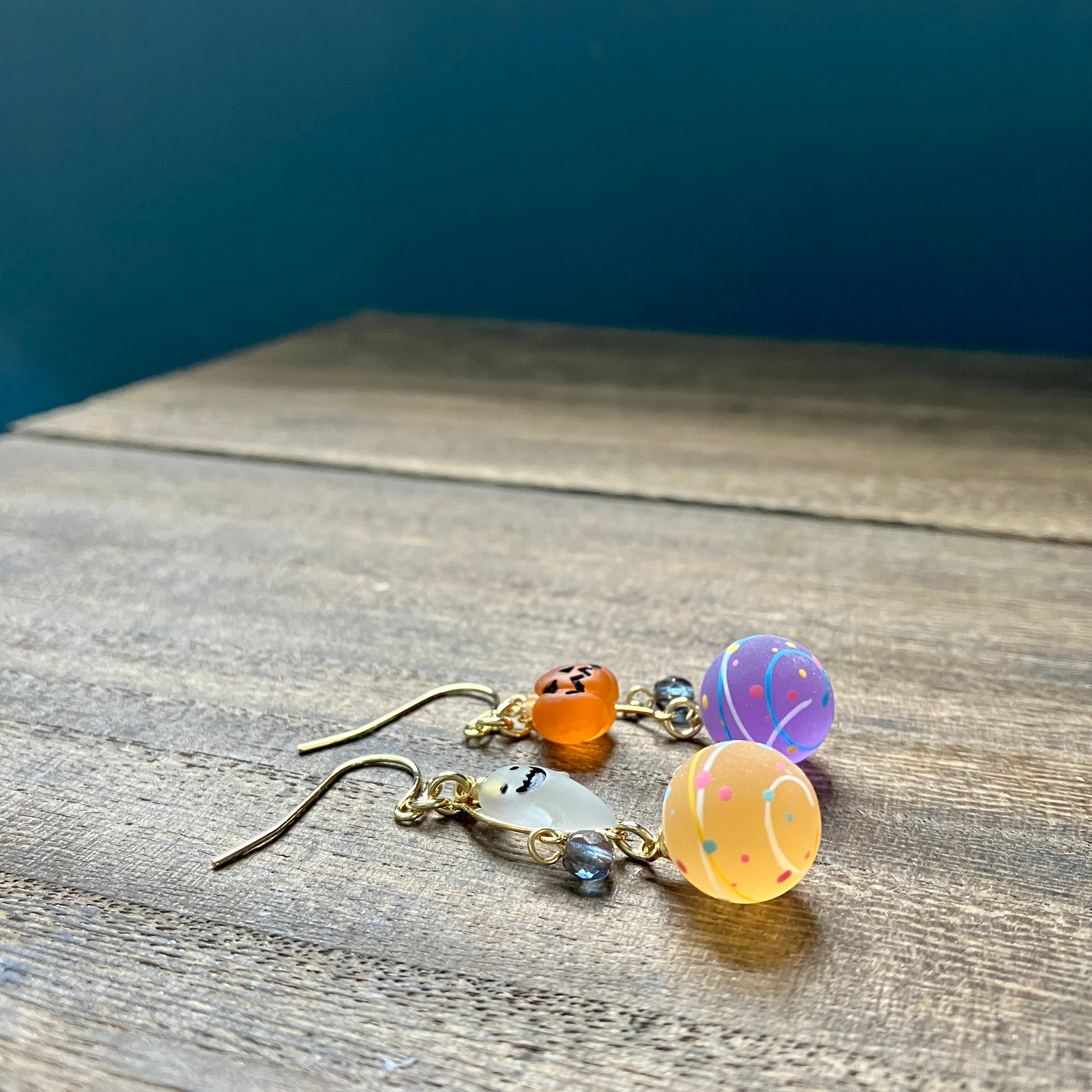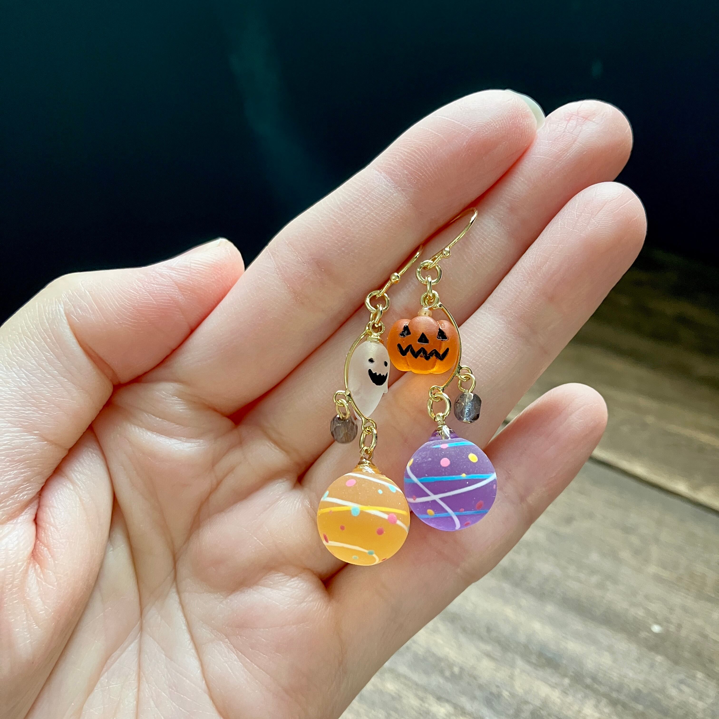 小さなおばけとかぼちゃのチャームを大人気の水風船レジンと組み合わせました。