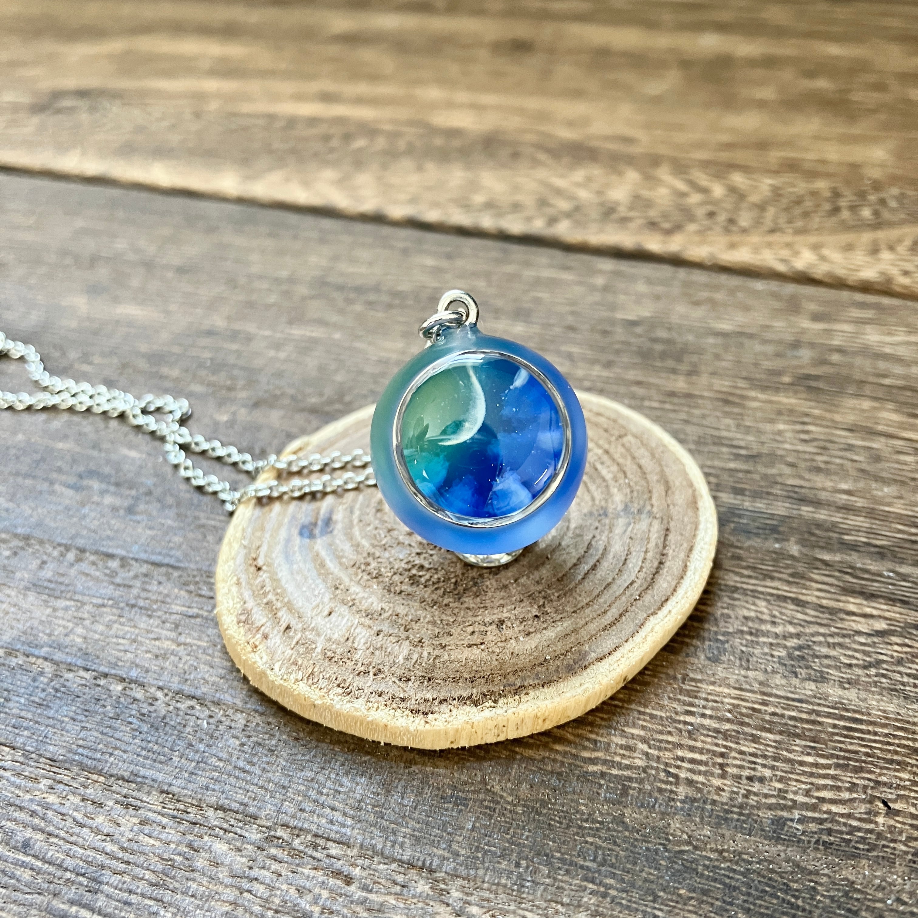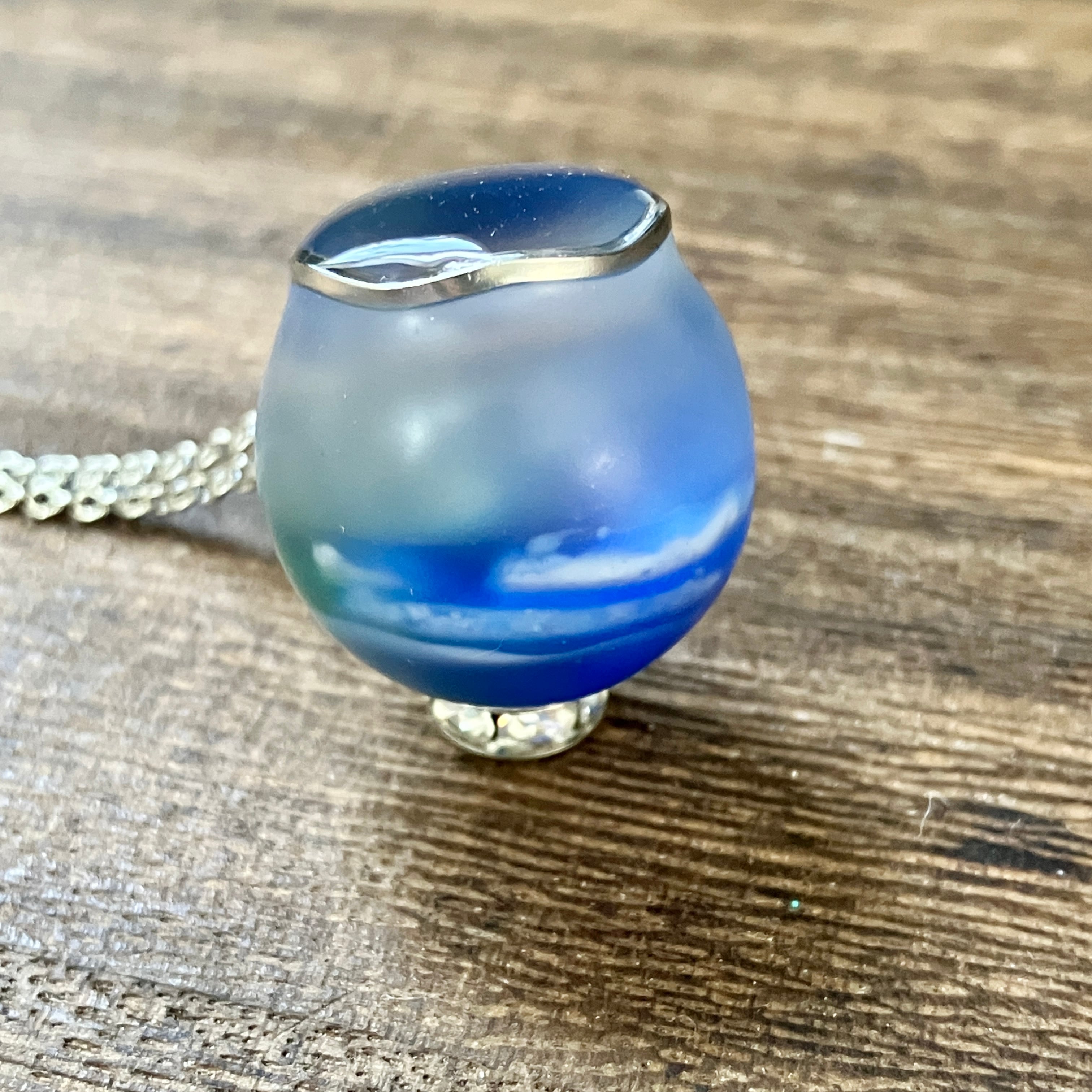 磨りガラスのようなマット加工と中央の窓からは小さな球体に広がる一期一会の空がを覗き込めます。