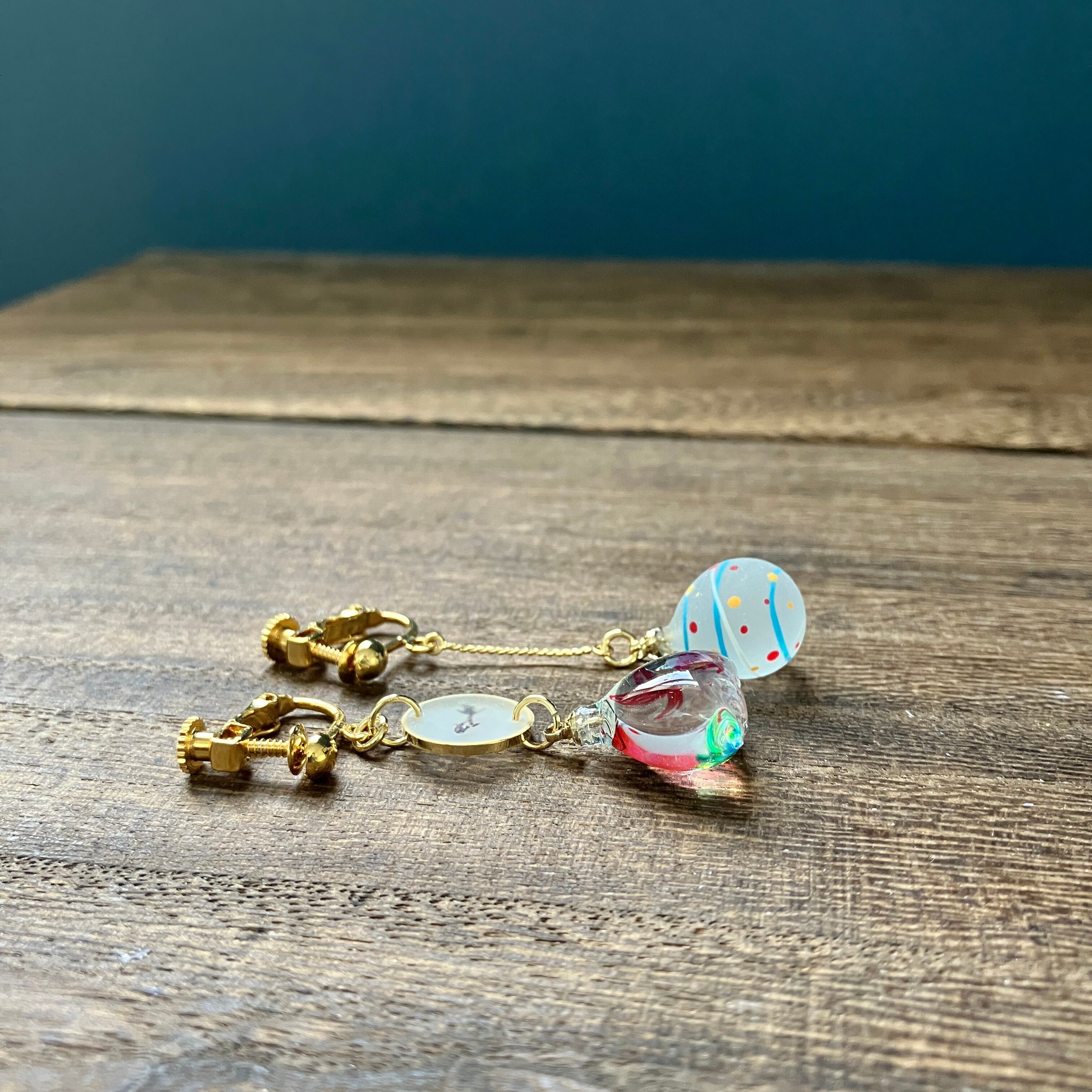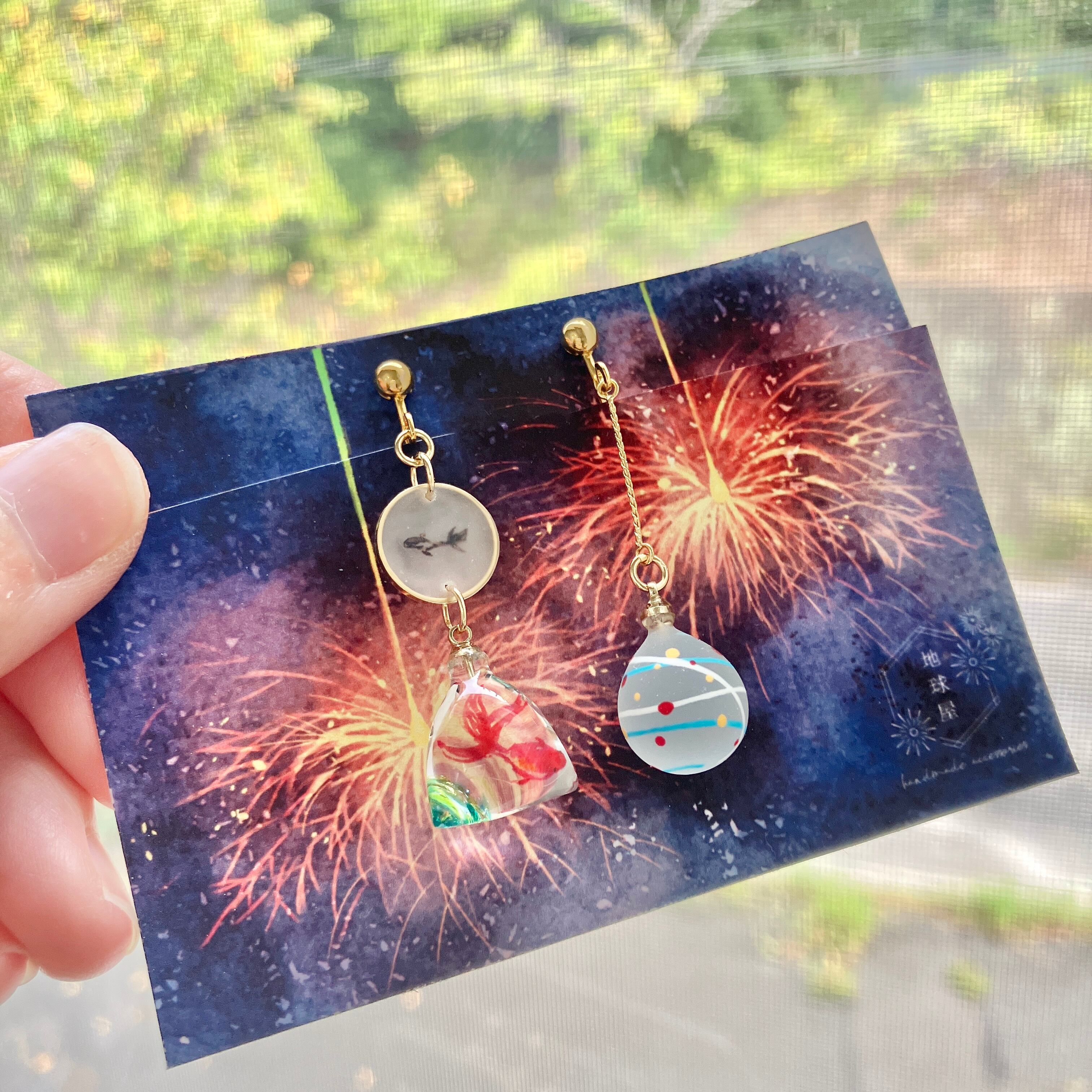 金魚すくいと小さな水風船のイヤリング