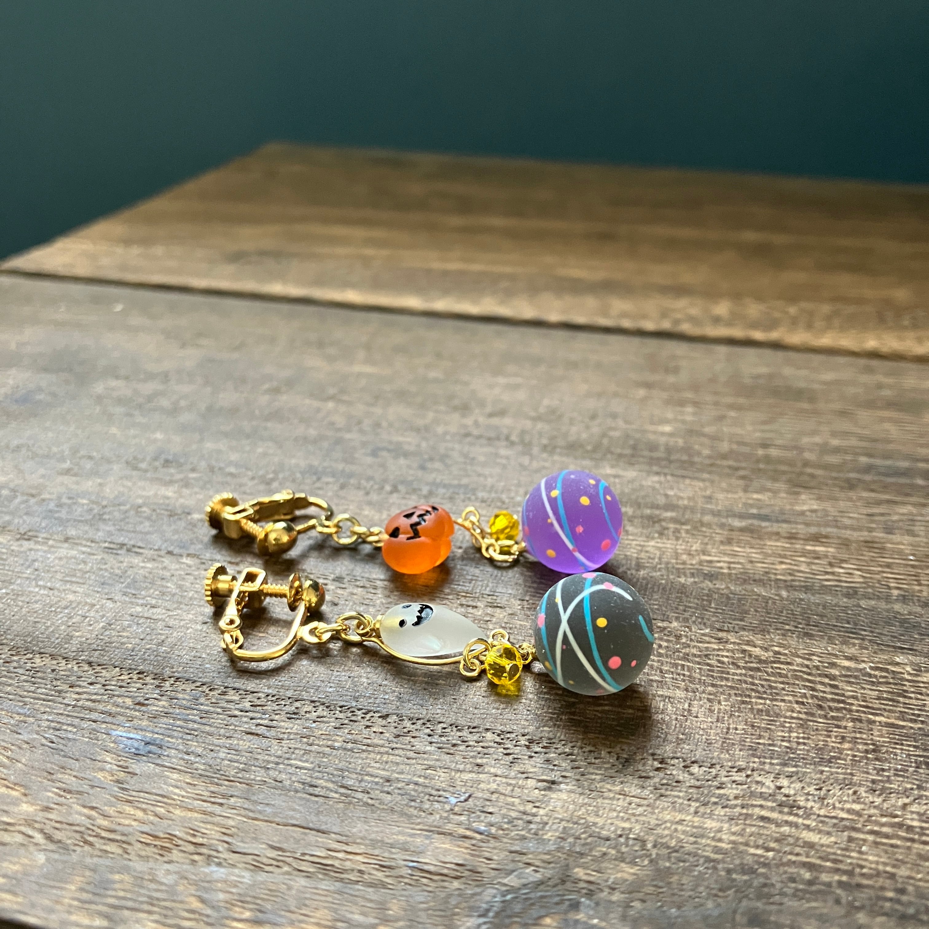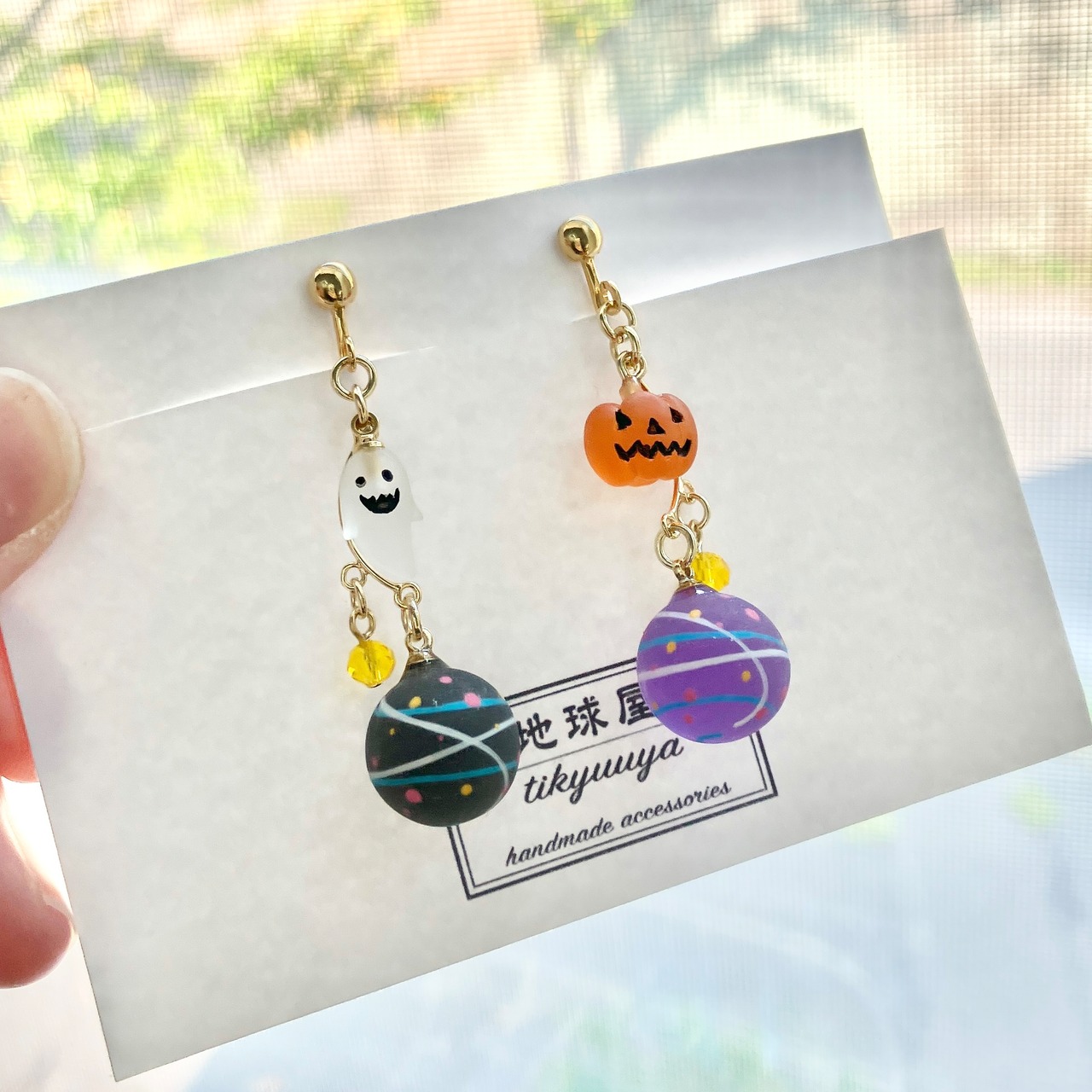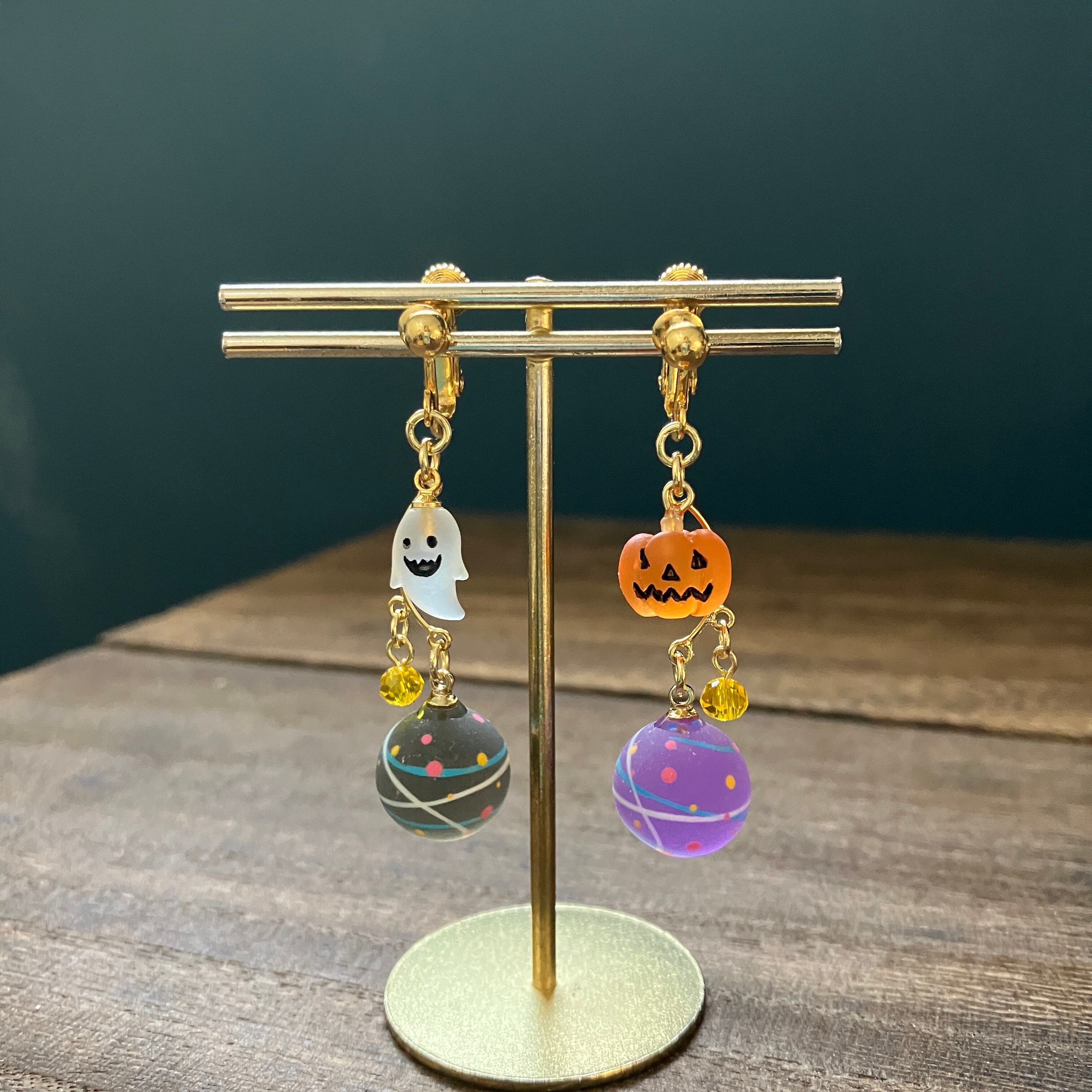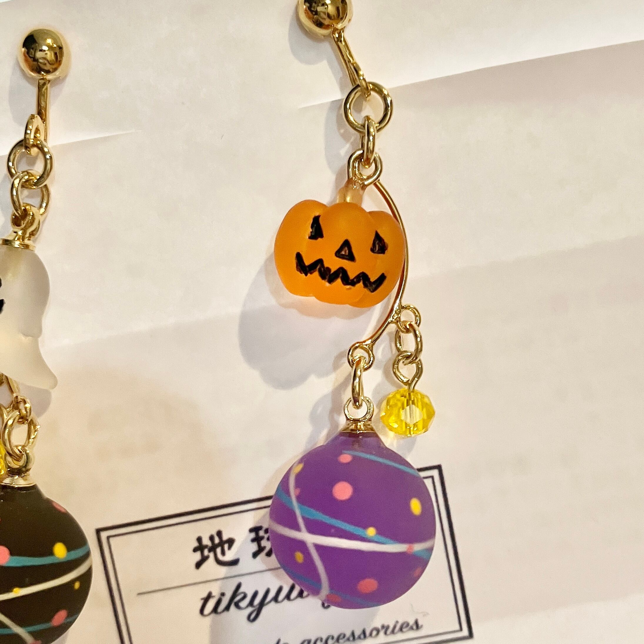 小さなおばけとかぼちゃのチャームを大人気の水風船レジンと組み合わせました。