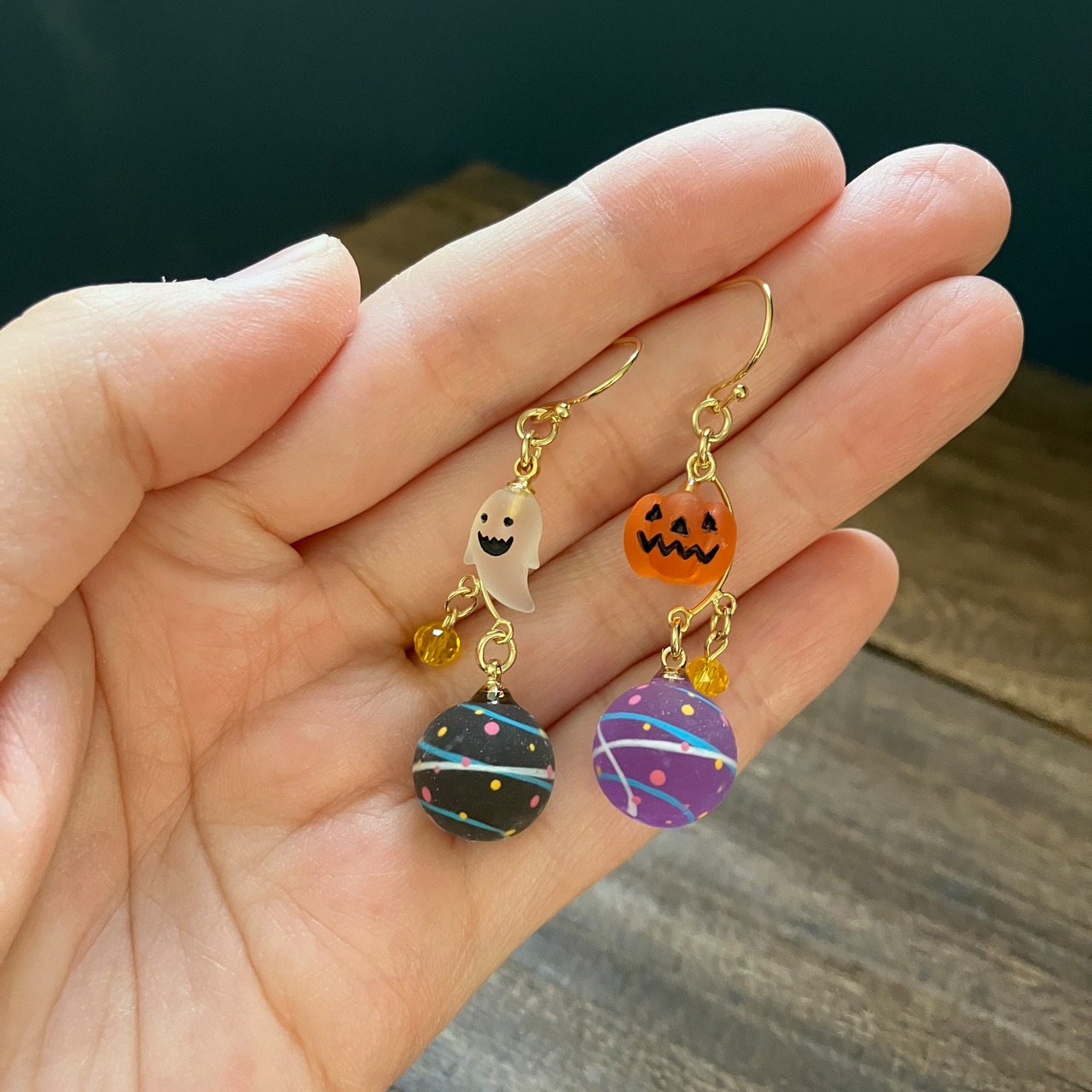 小さなおばけとかぼちゃのチャームを大人気の水風船レジンと組み合わせました。