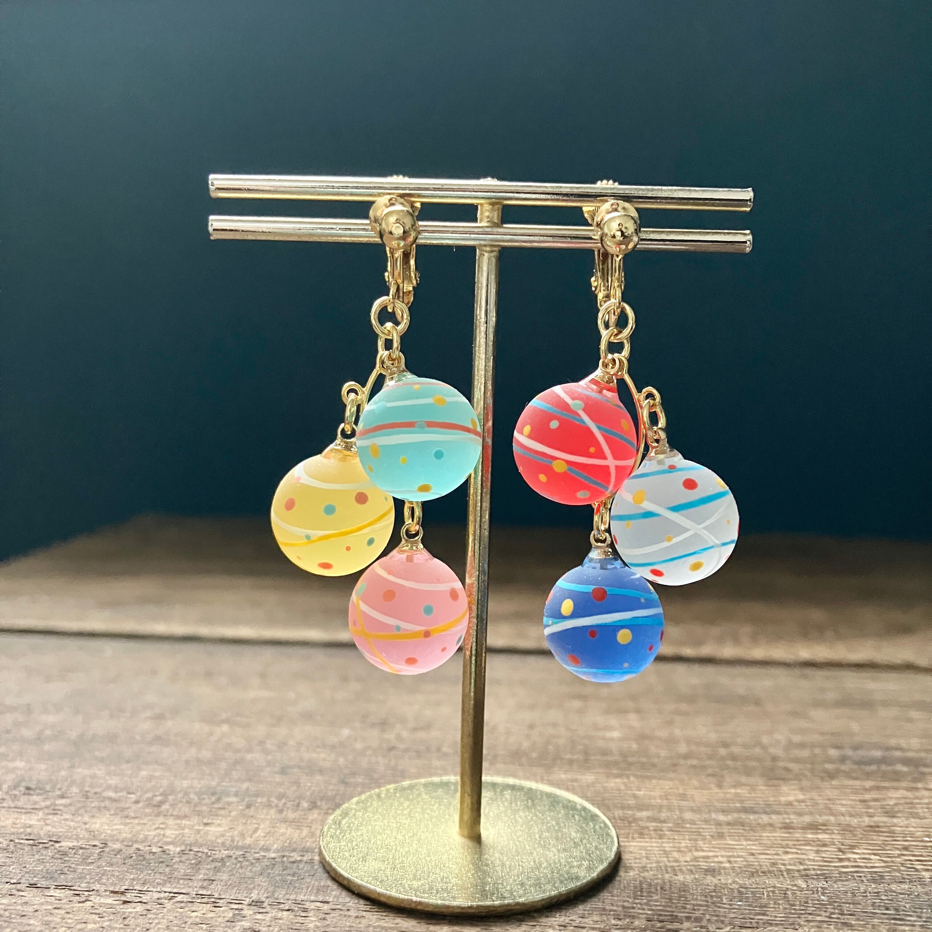 小さな水風船3連イヤリング(マット)