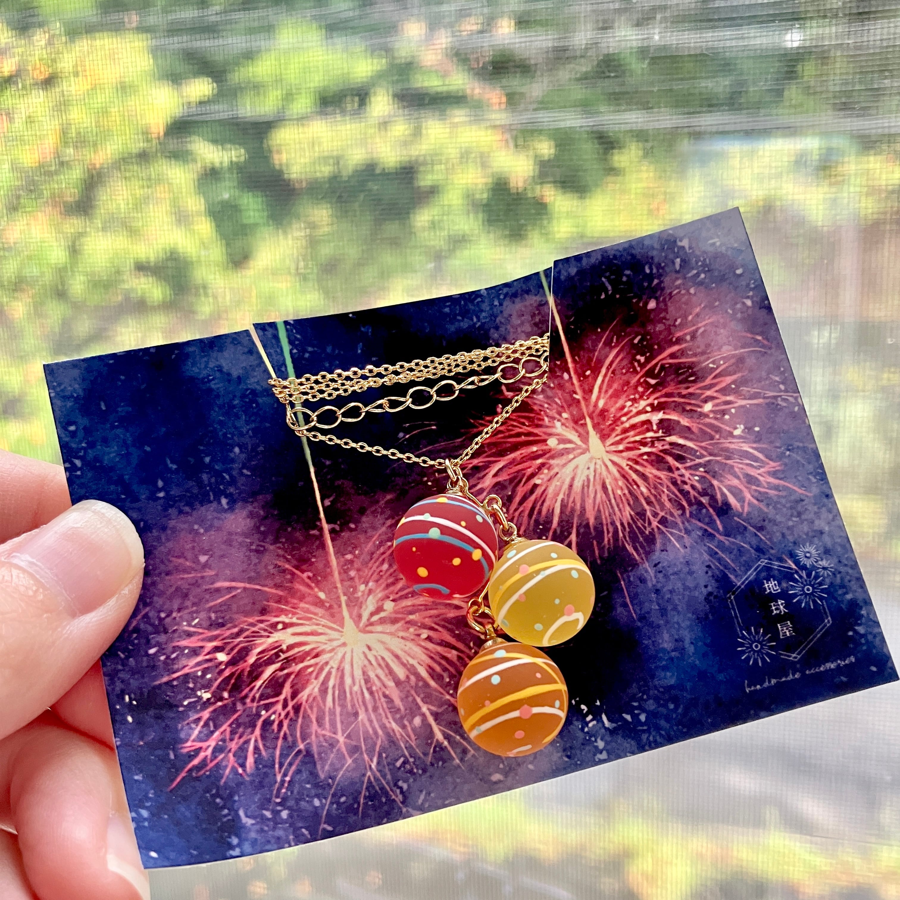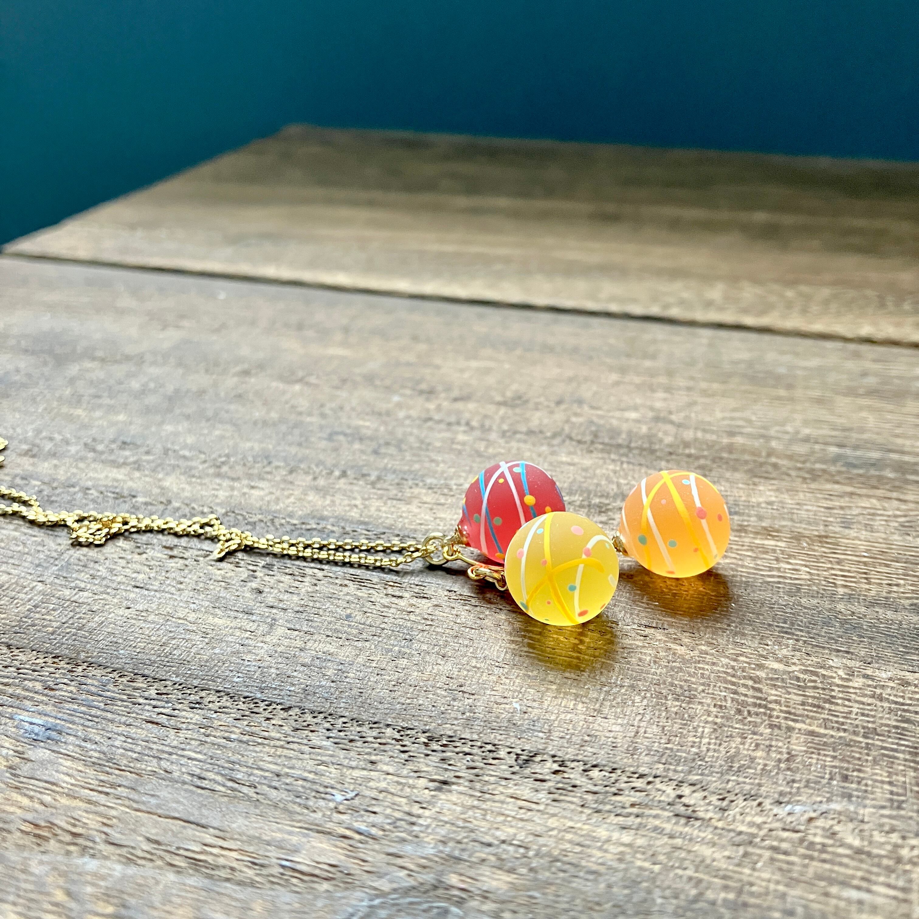 小さな水風船を3色組み合わせてネックレスに仕立てました。
