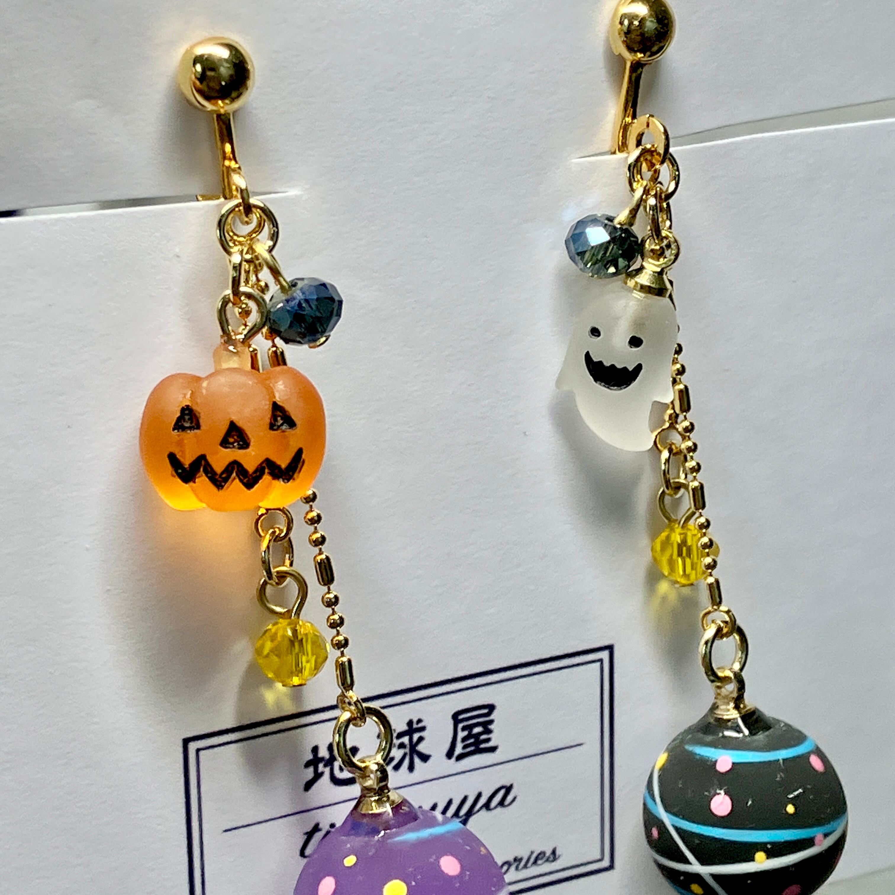 小さなおばけとかぼちゃのチャームを大人気の水風船レジンと組み合わせました。