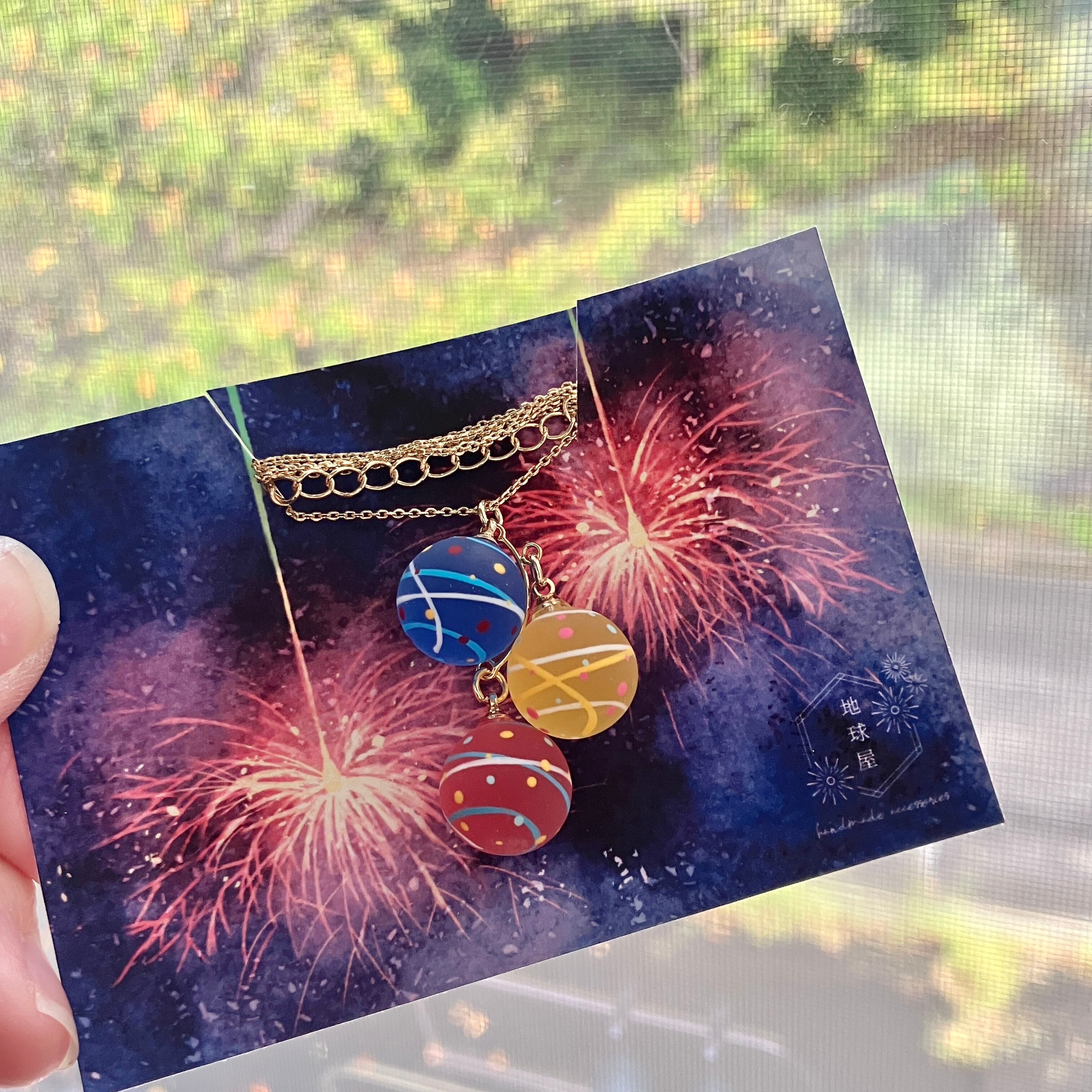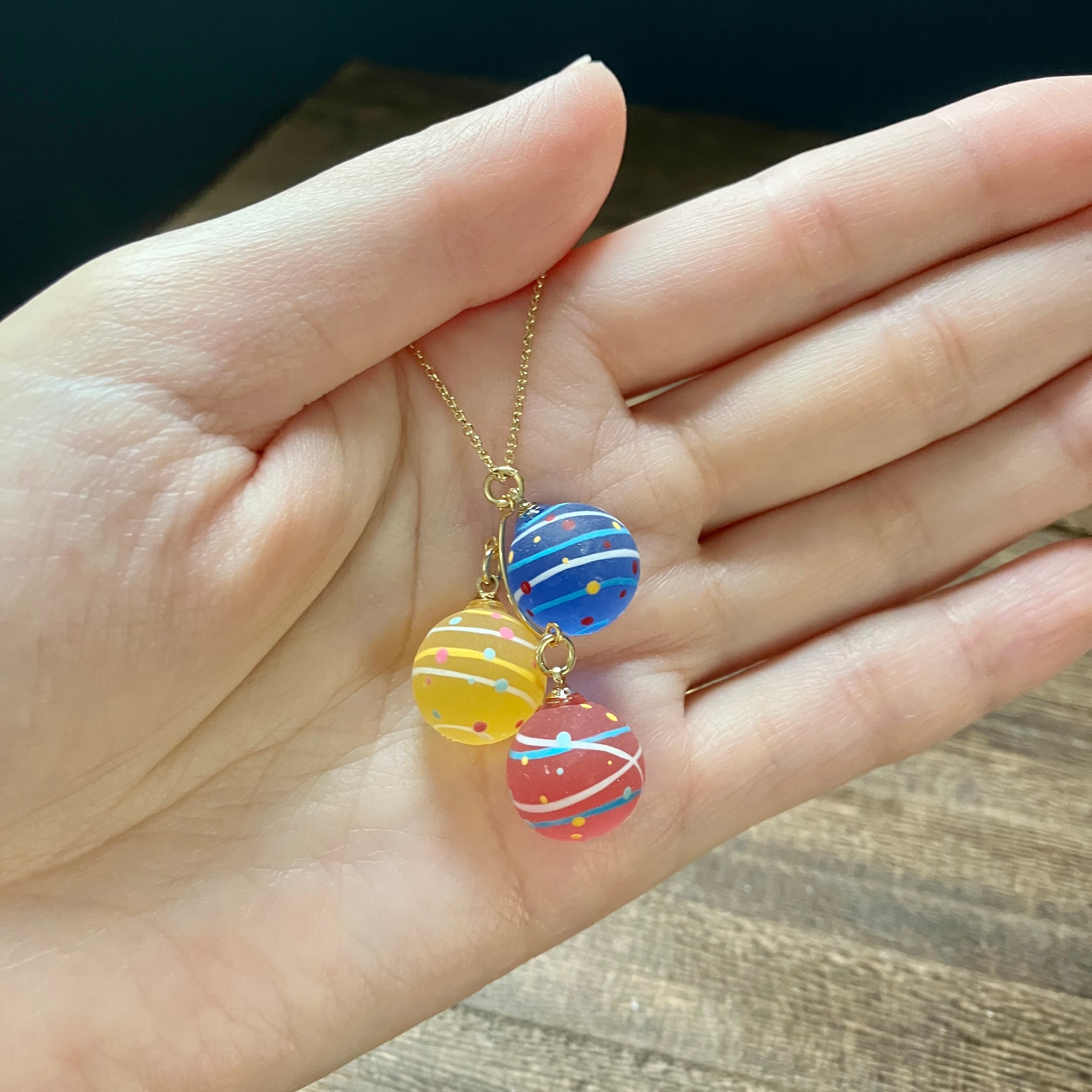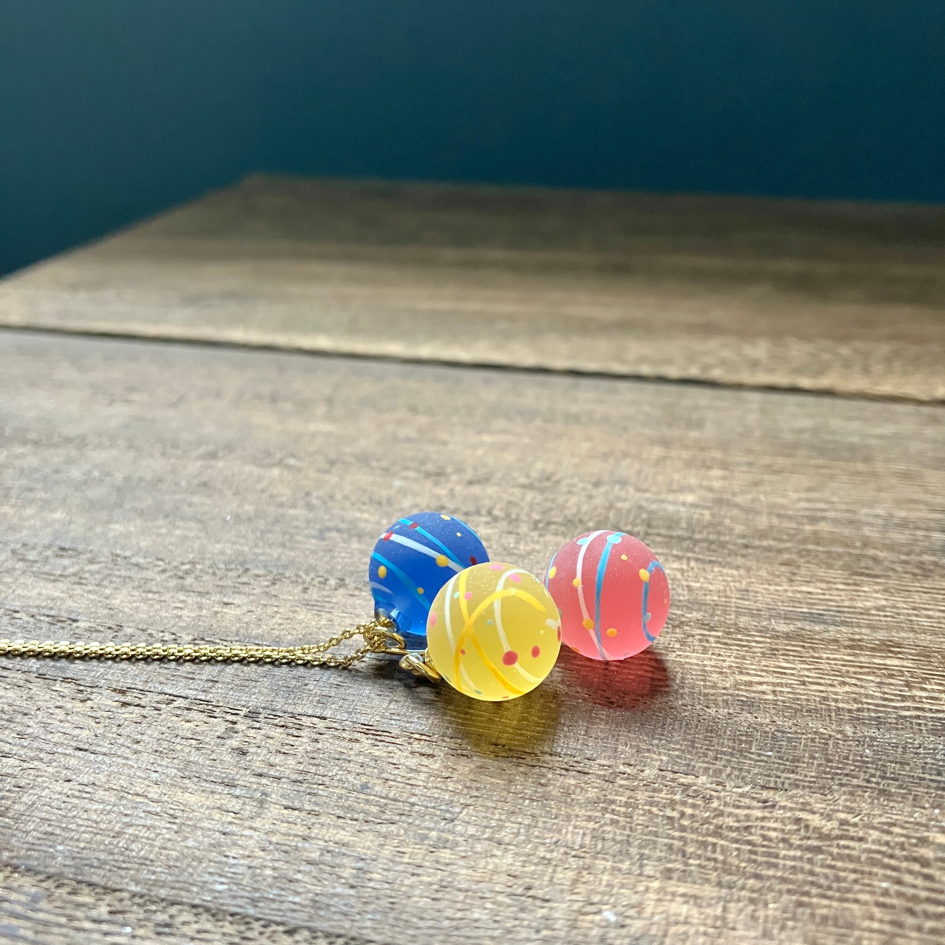 小さな水風船を3色組み合わせてネックレスに仕立てました。