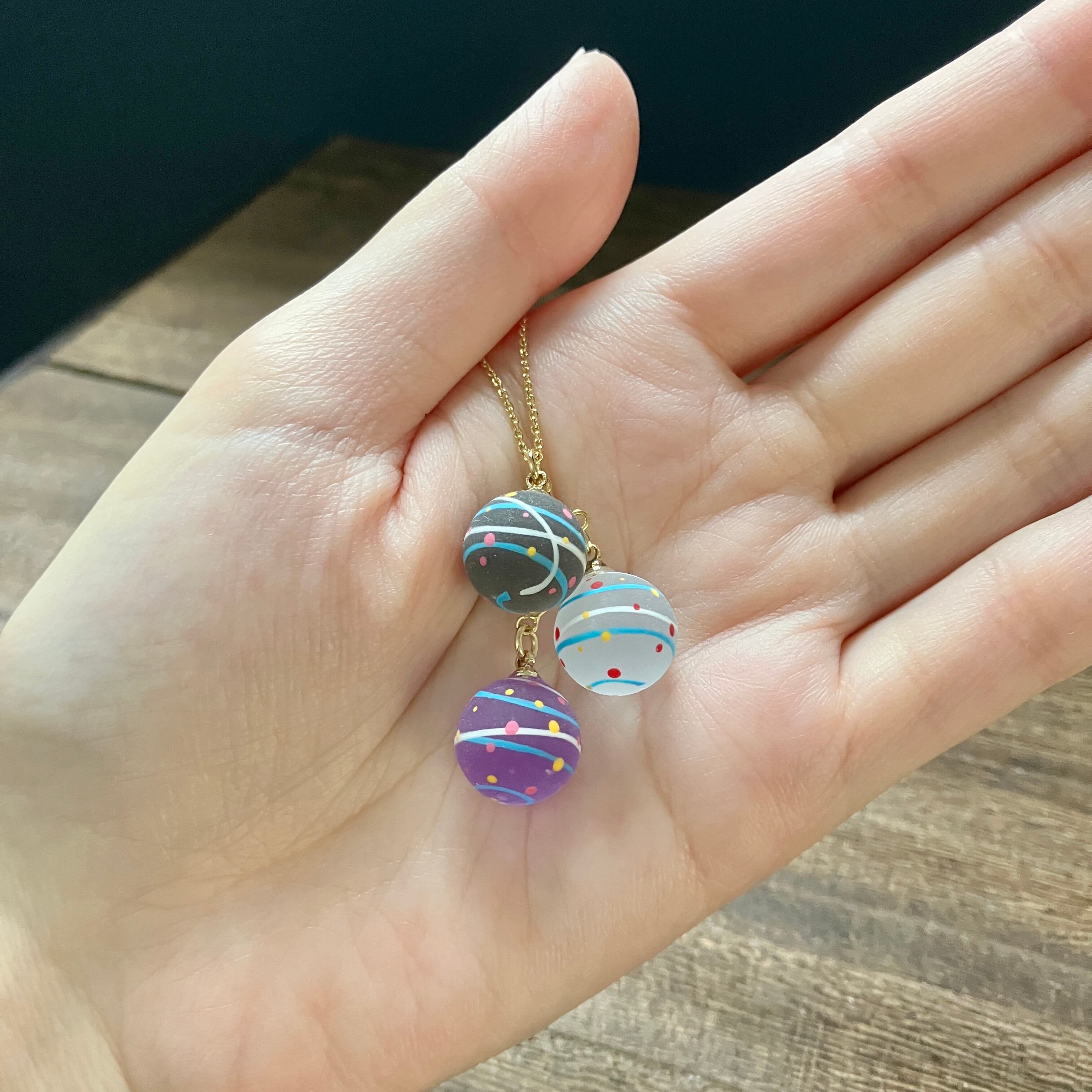 小さな水風船を3色組み合わせてネックレスに仕立てました。