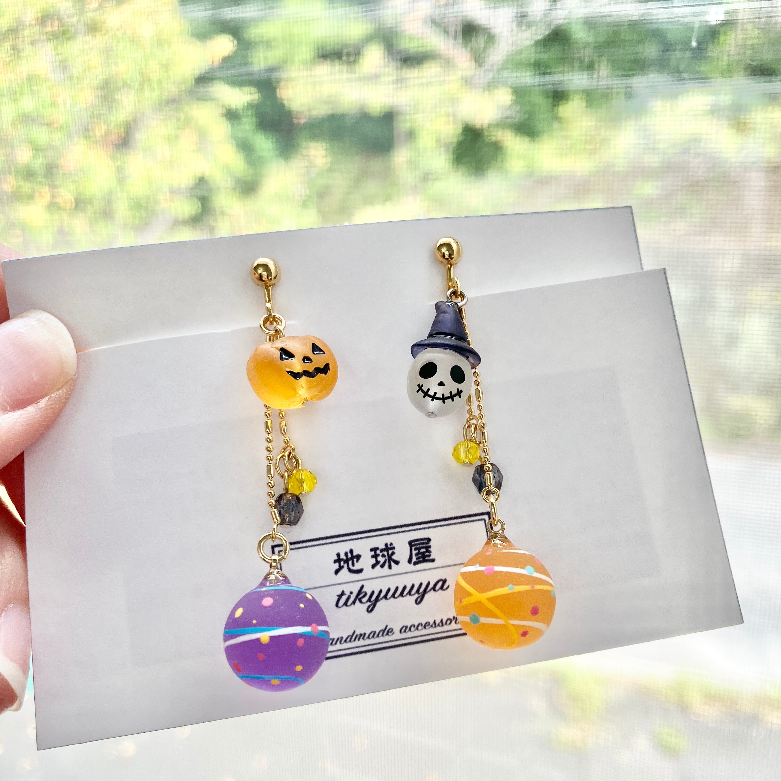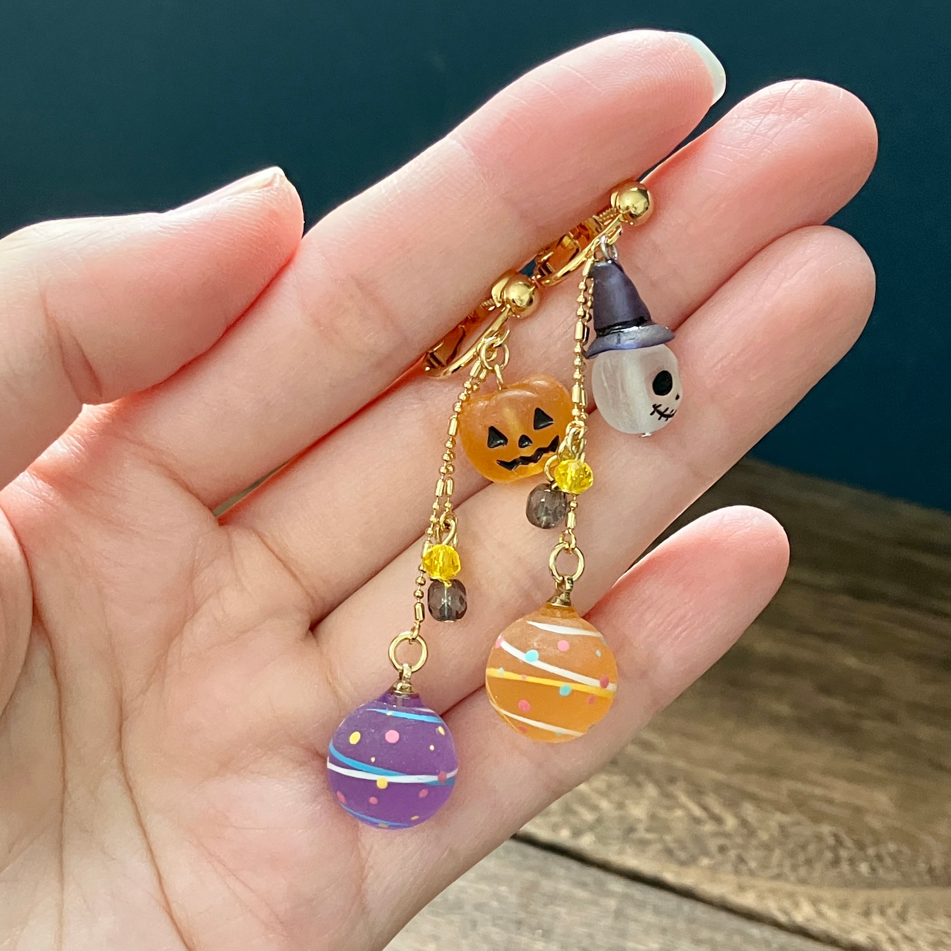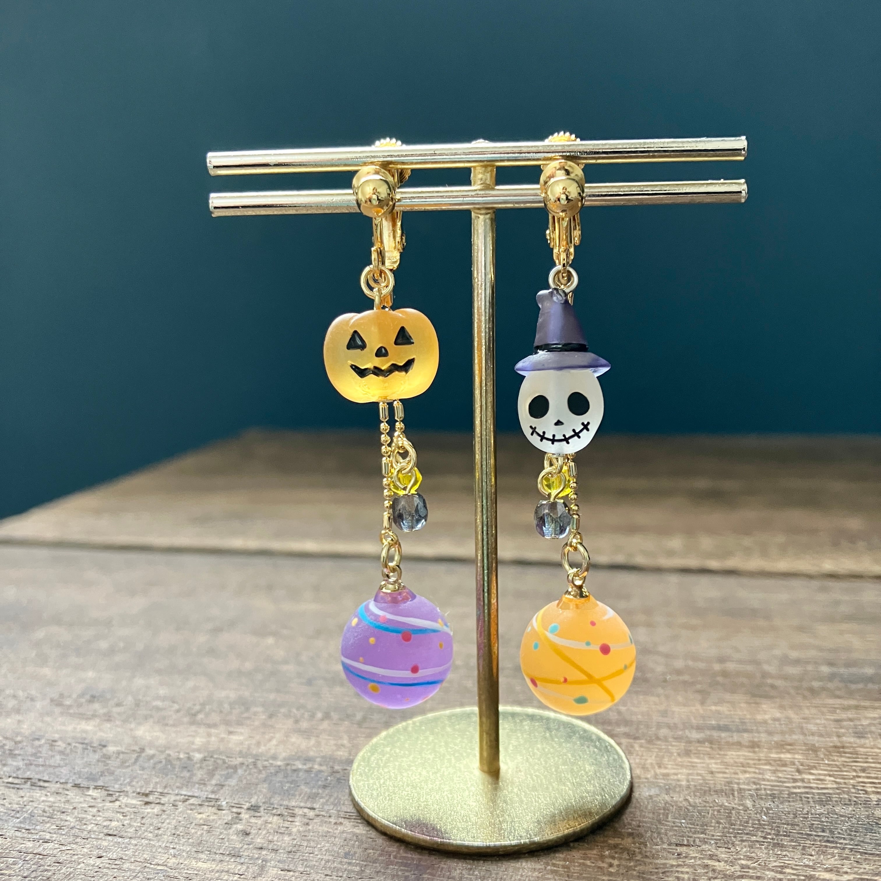ガイコツとかぼちゃと水風船のイヤリング