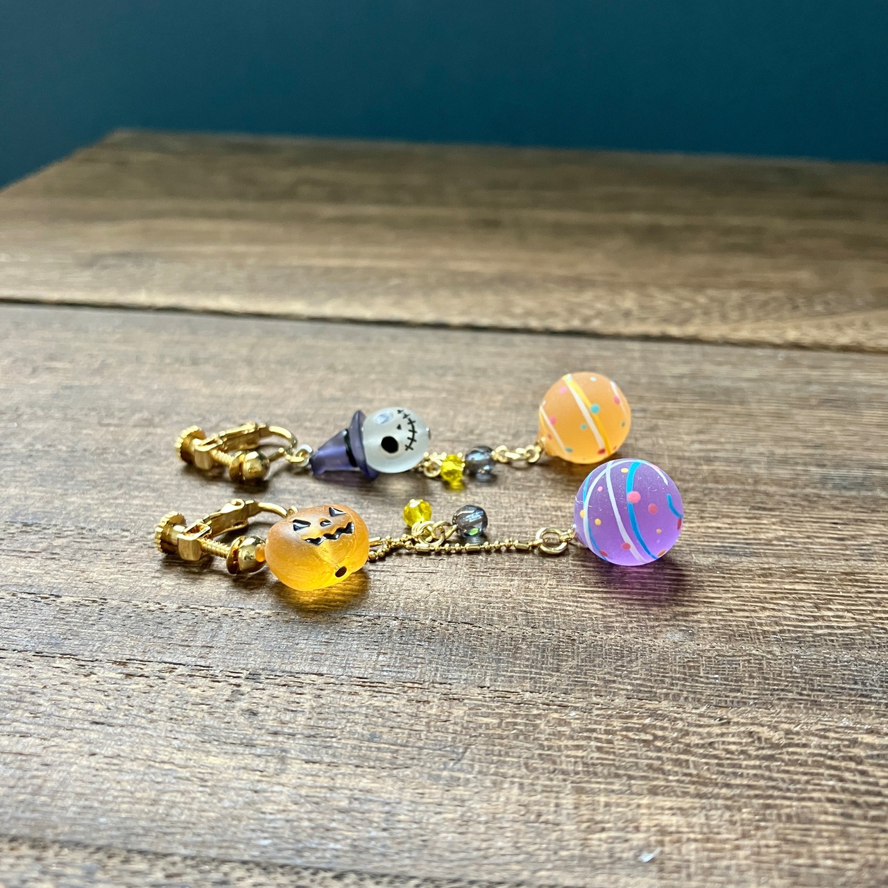小さなガイコツとかぼちゃのチャームを大人気の水風船レジンと組み合わせました。