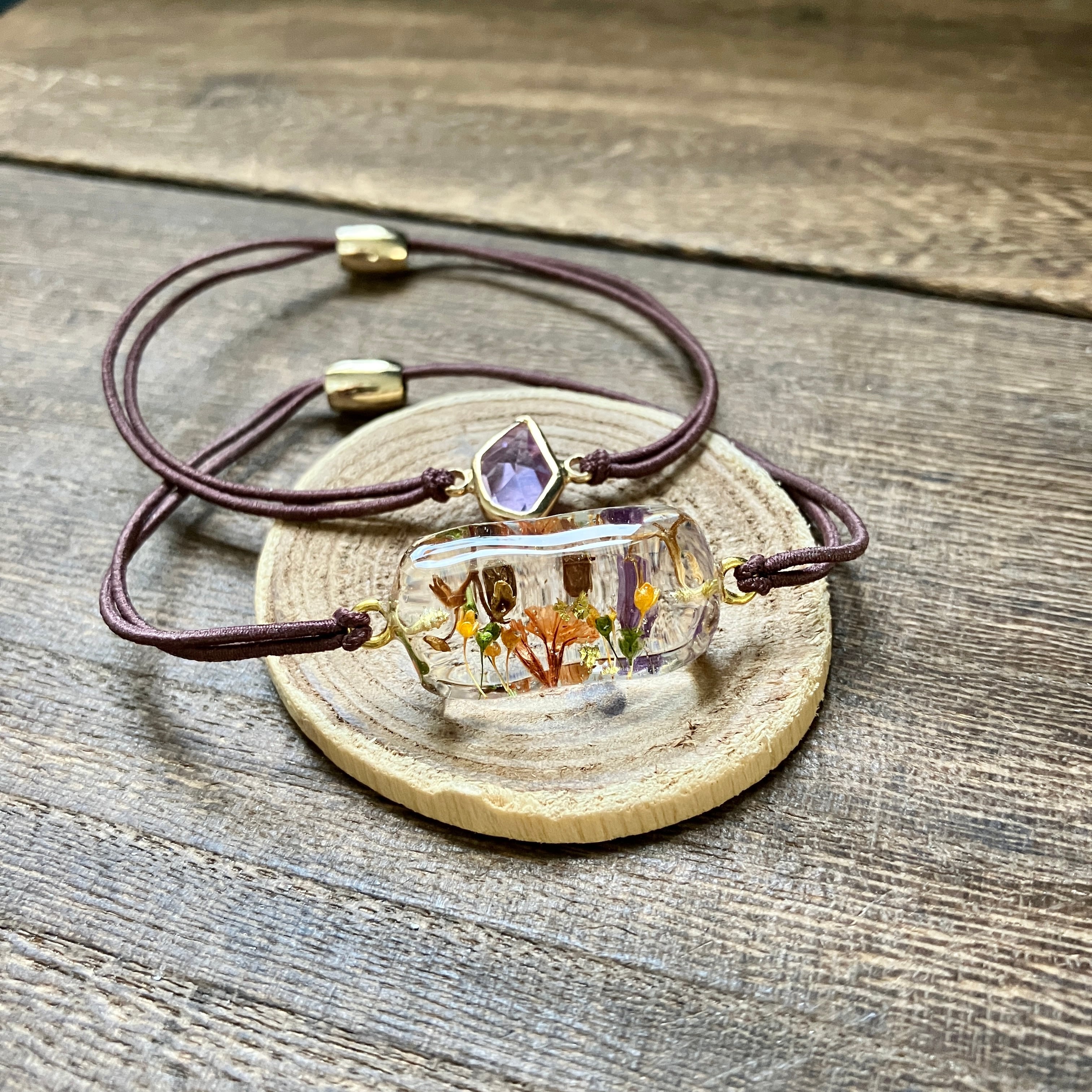 透明感溢れるモチーフに優しい色のお花を閉じ込めました。