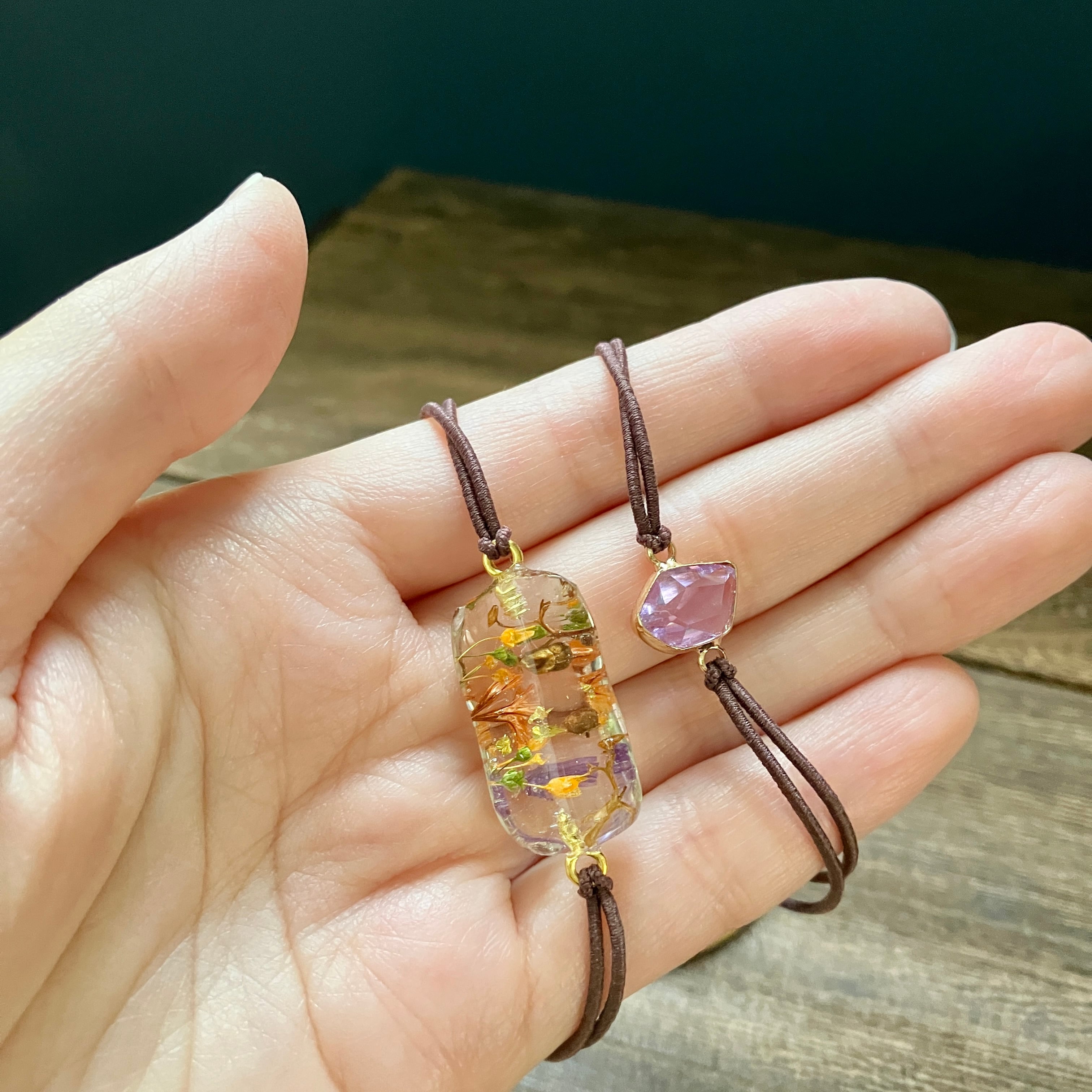 ガラスチャームのシンプルなヘアゴム ブレスと一緒に重ねづけにおすすめな2色セットです^ ^