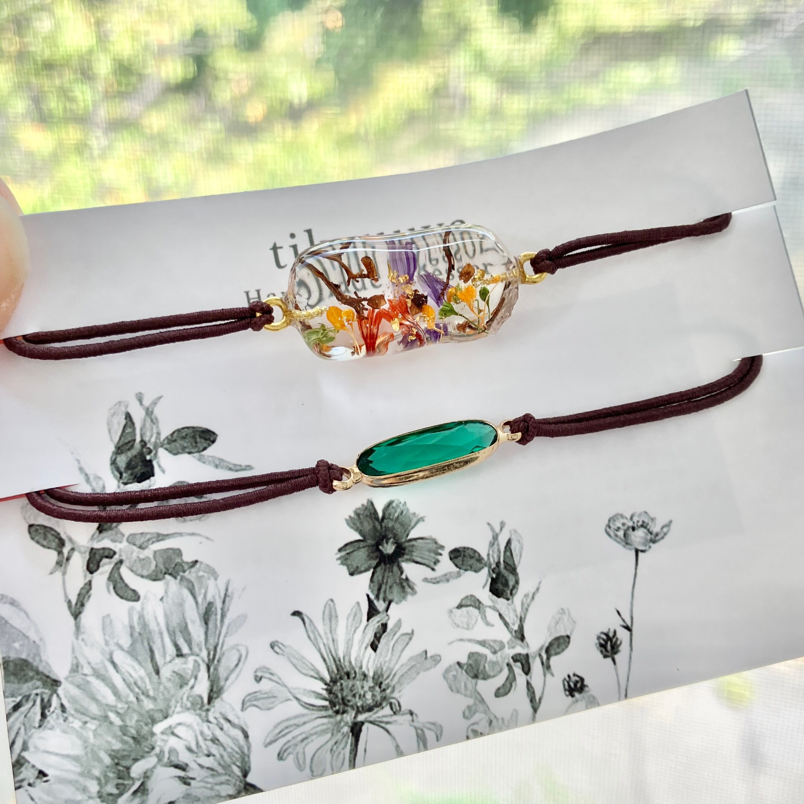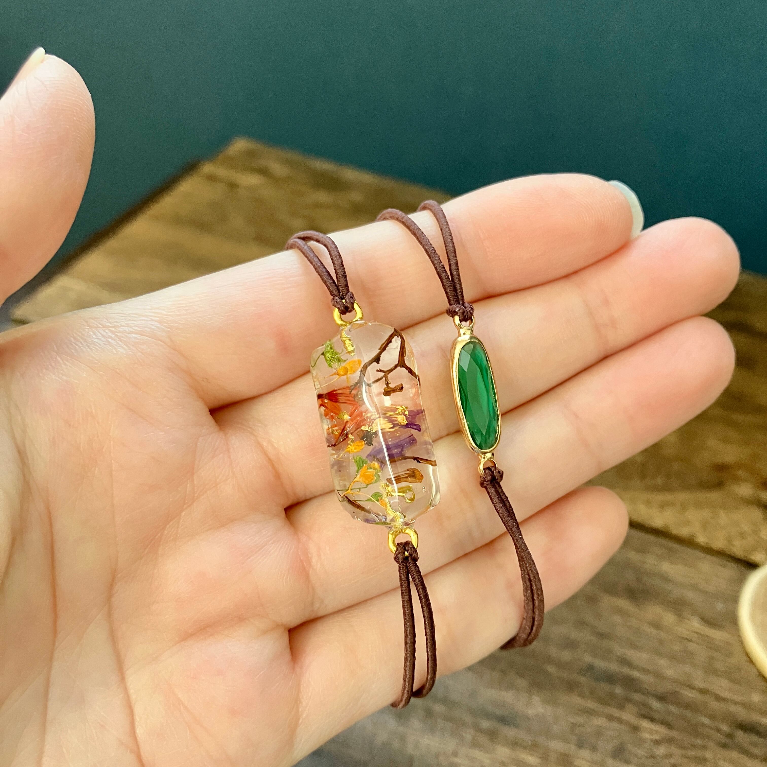 ガラスチャームのシンプルなヘアゴム ブレスと一緒に重ねづけにおすすめな2色セットです^ ^
