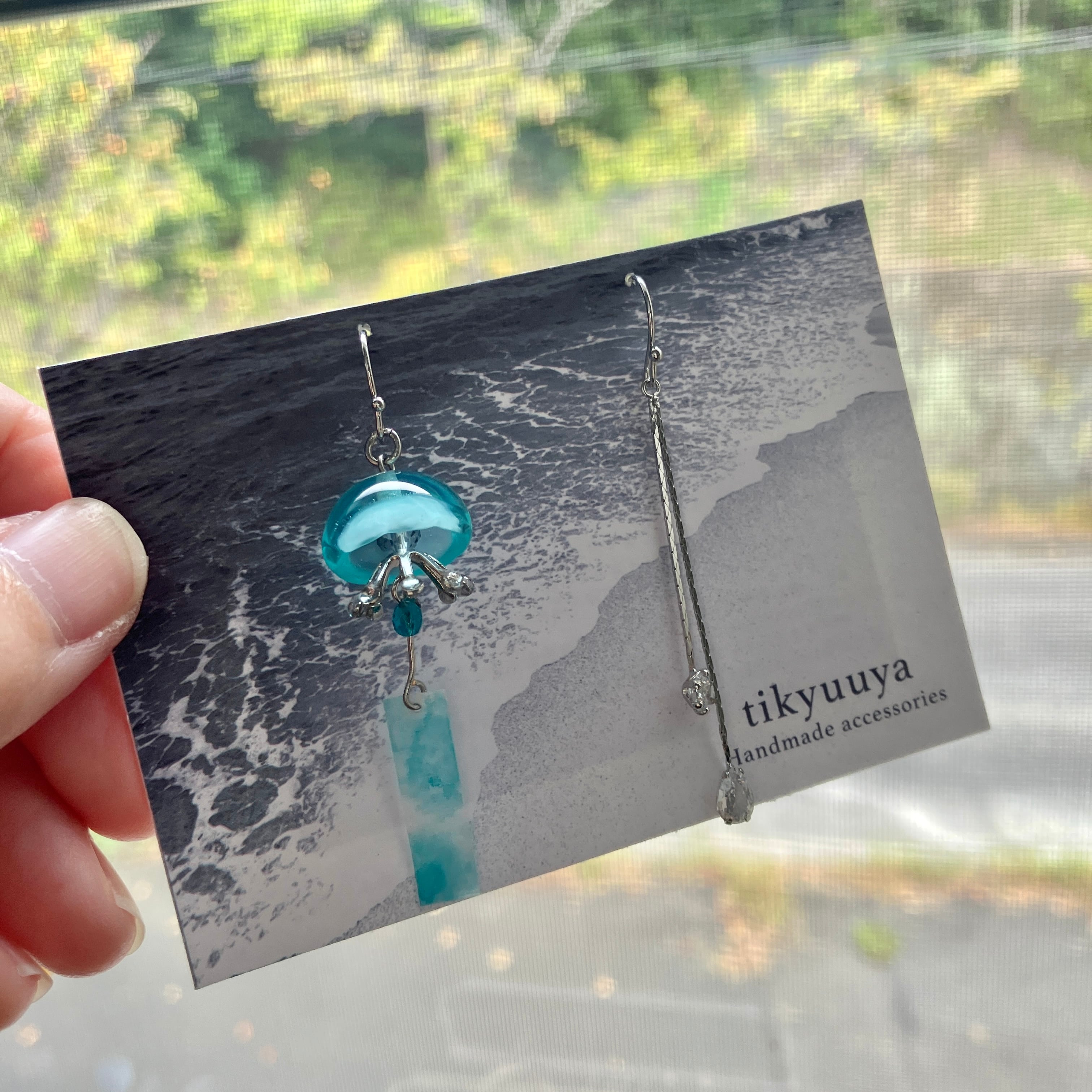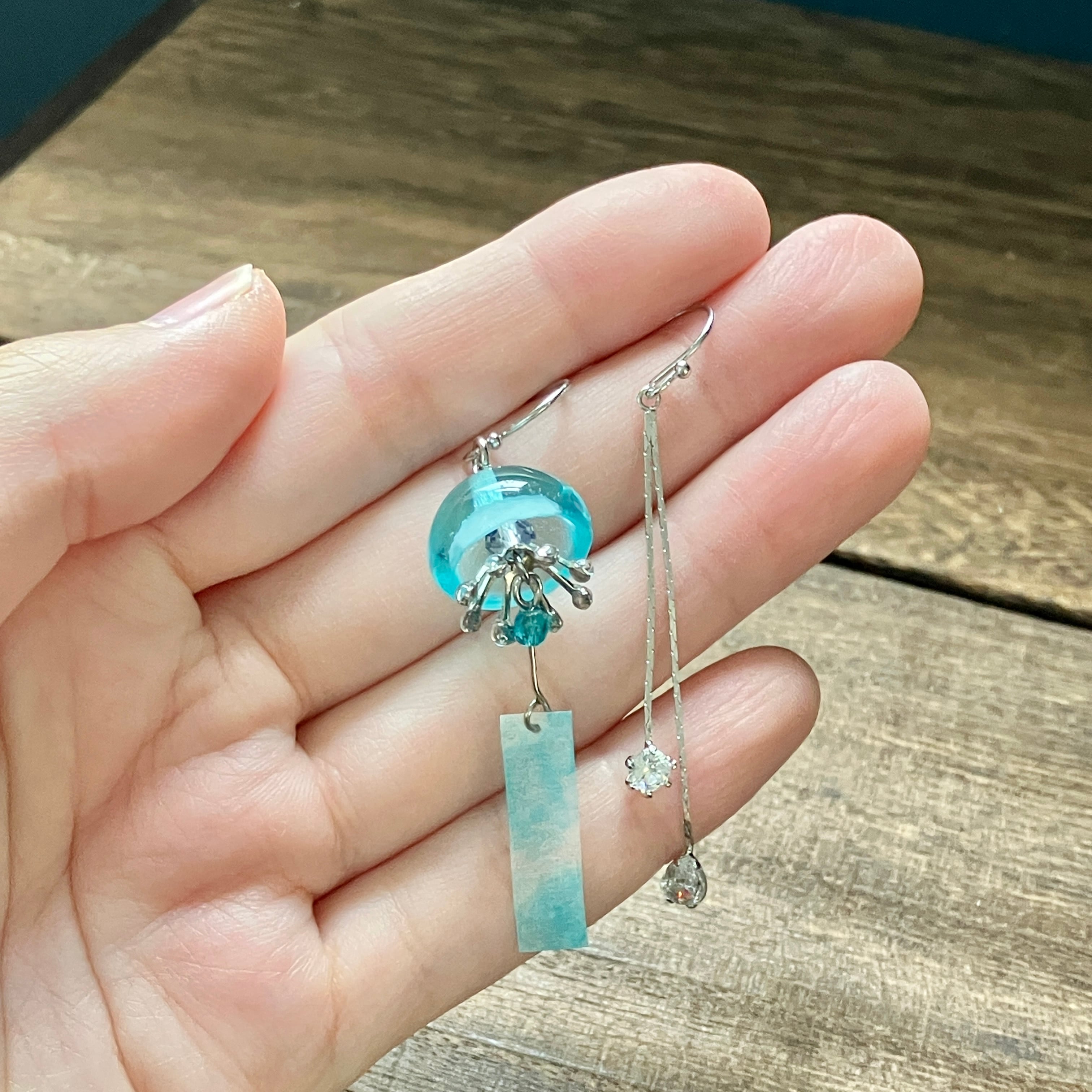 海月と風鈴をモチーフにしたゆらゆら揺れる耳飾り。