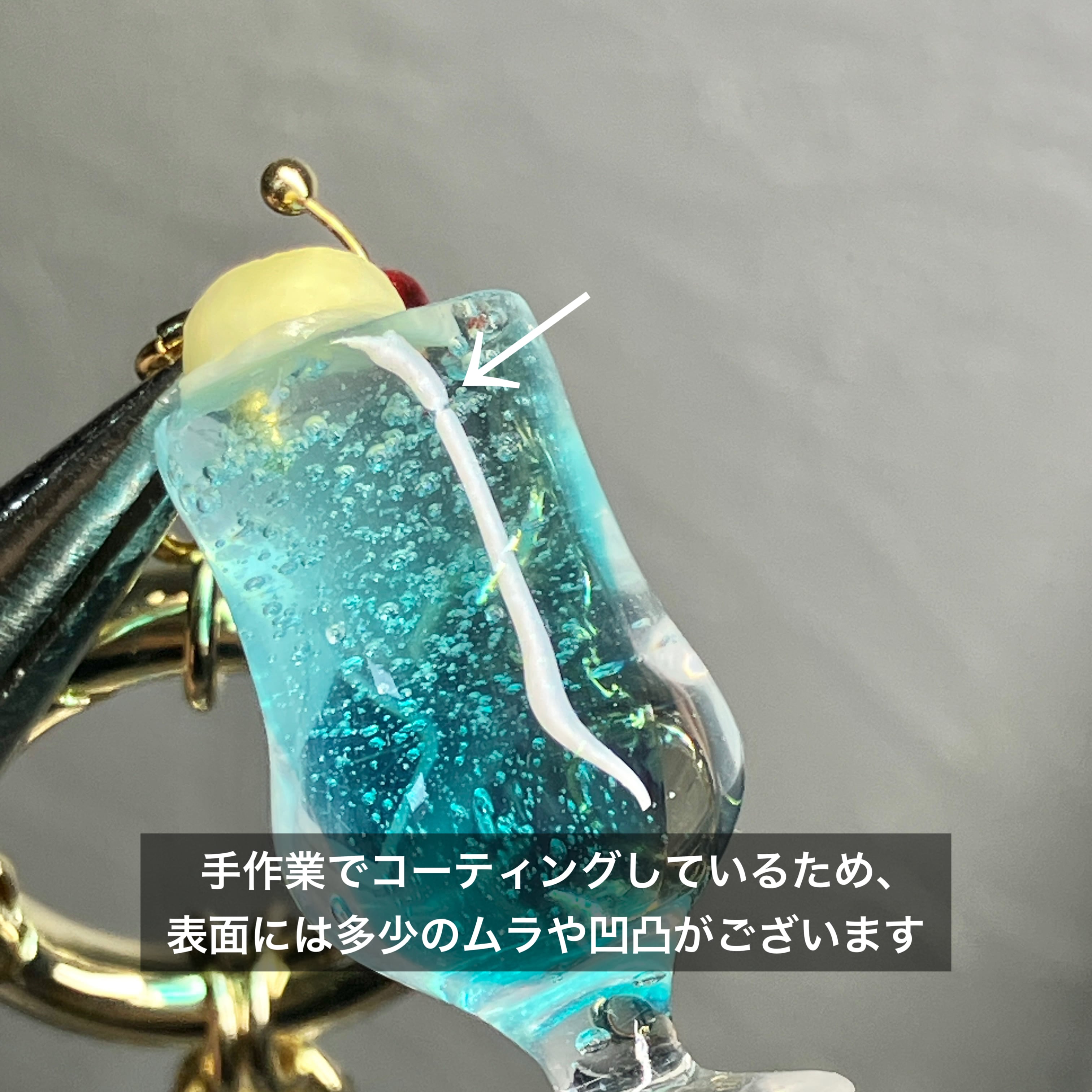 透明感のあるクリームソーダをキーリングに加工しました(^^)