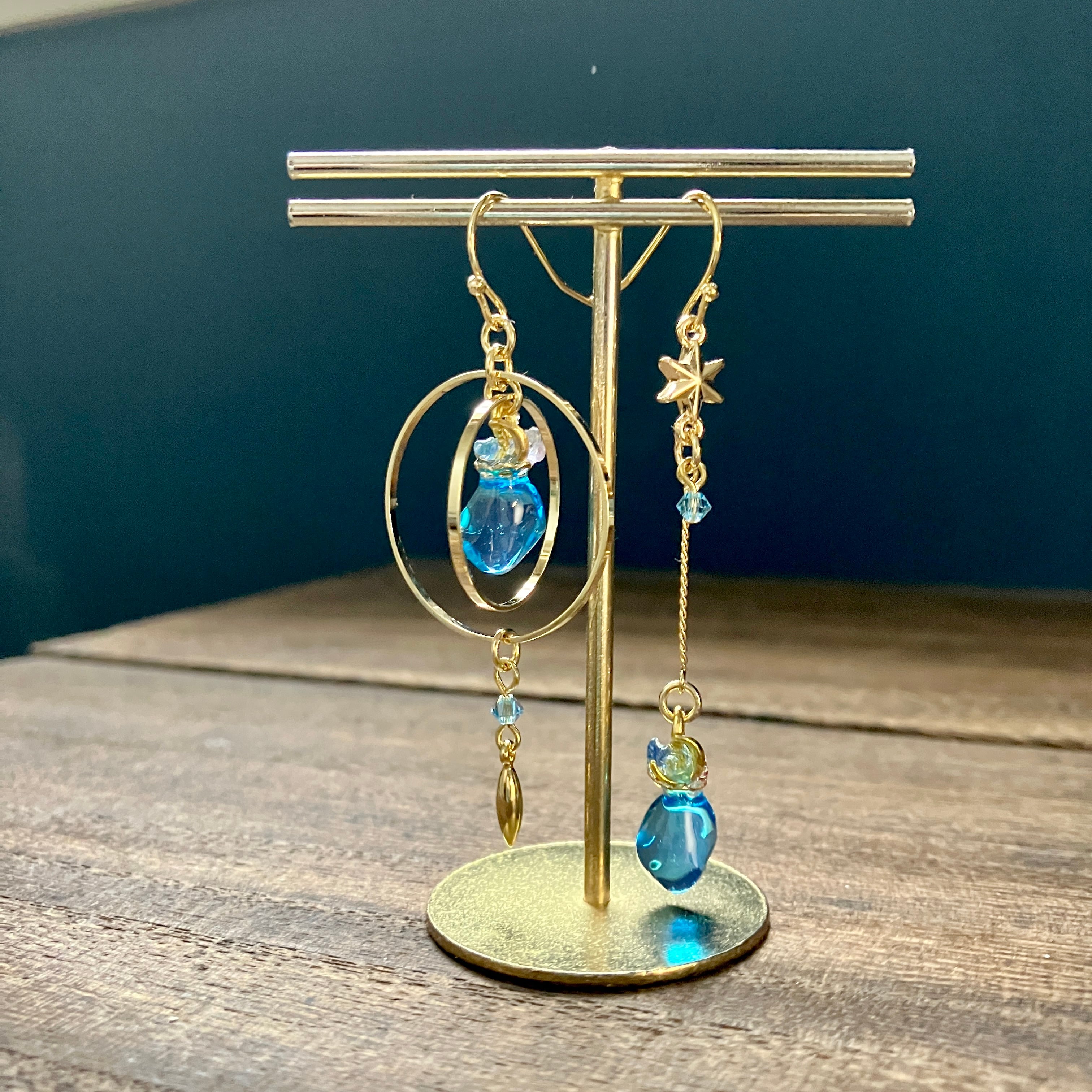 繊細な鉱石を星モチーフの金具で彩り、ファンタジー雰囲気の漂う耳飾りに仕上げました。