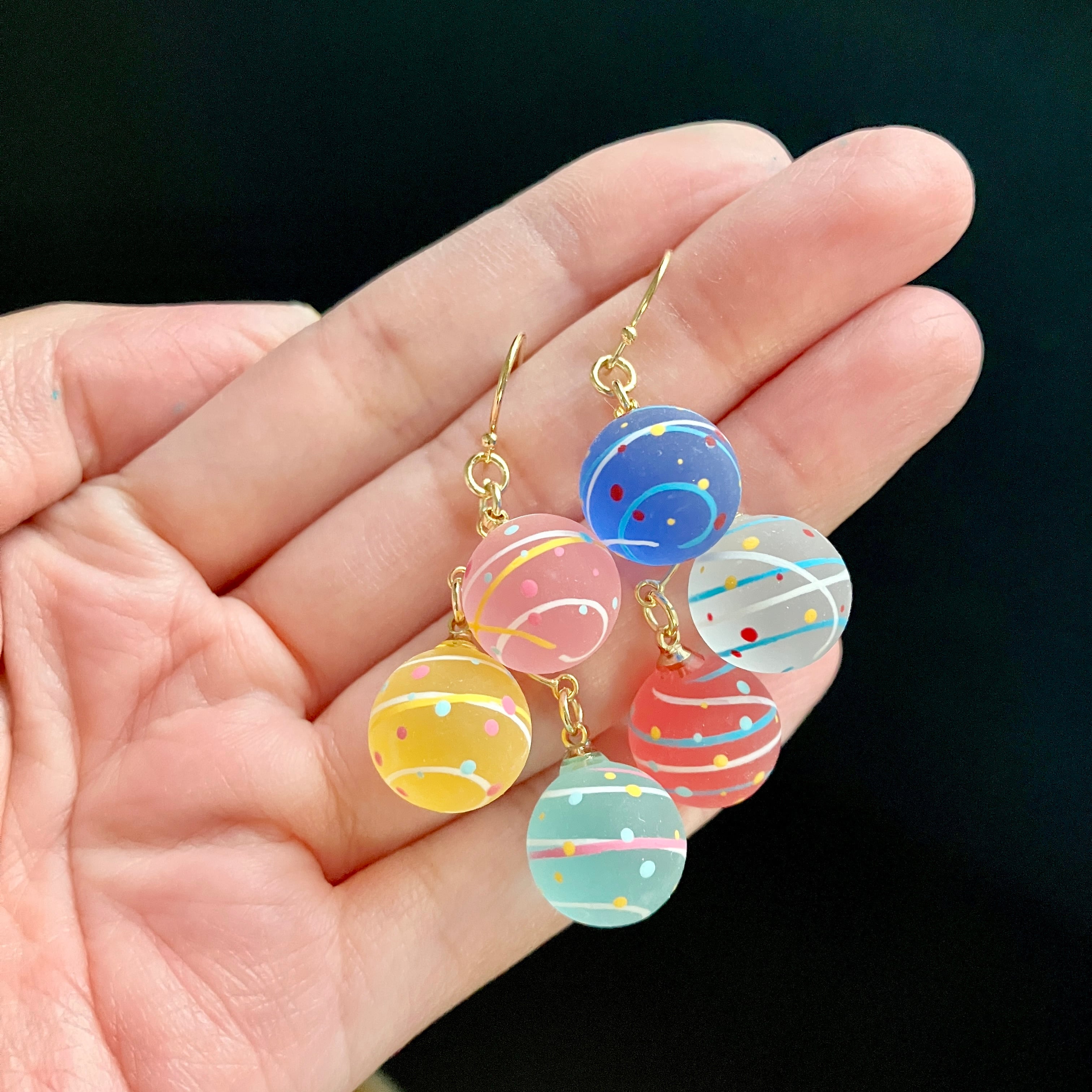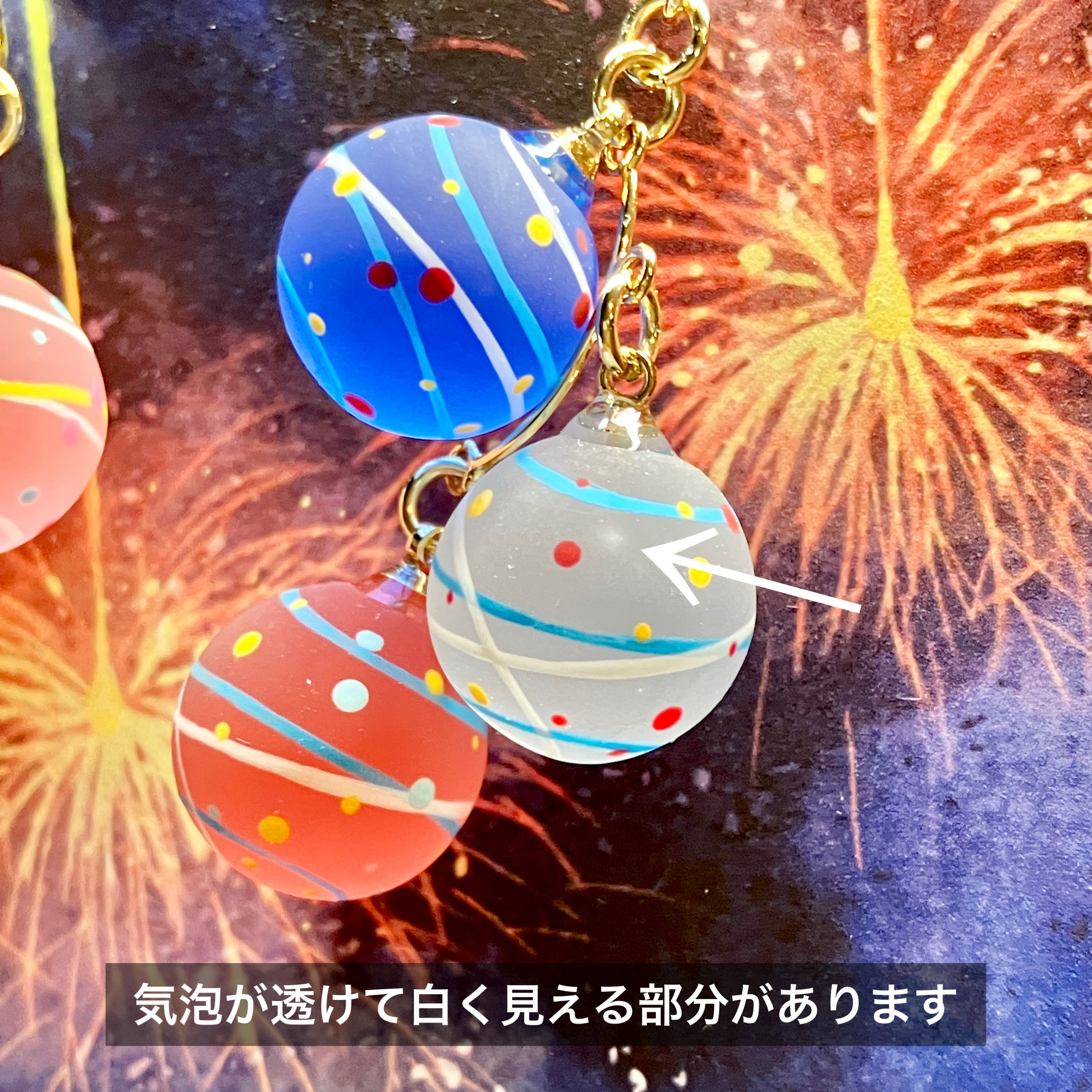 12ミリの小さな球体にヨーヨー模様を手描きしました(^^)